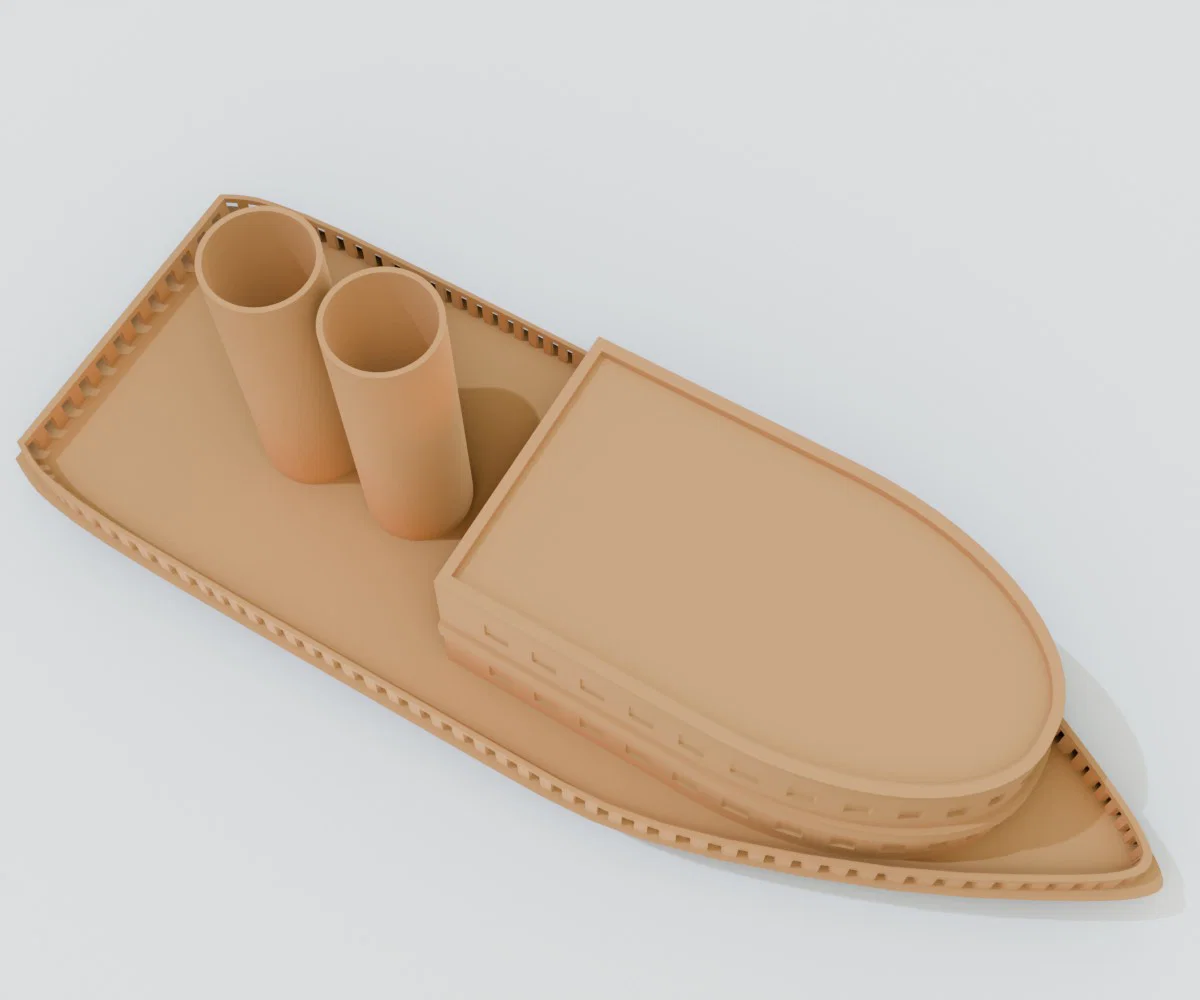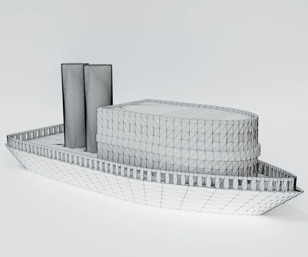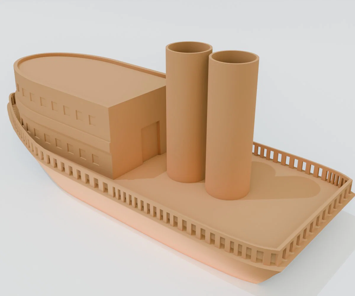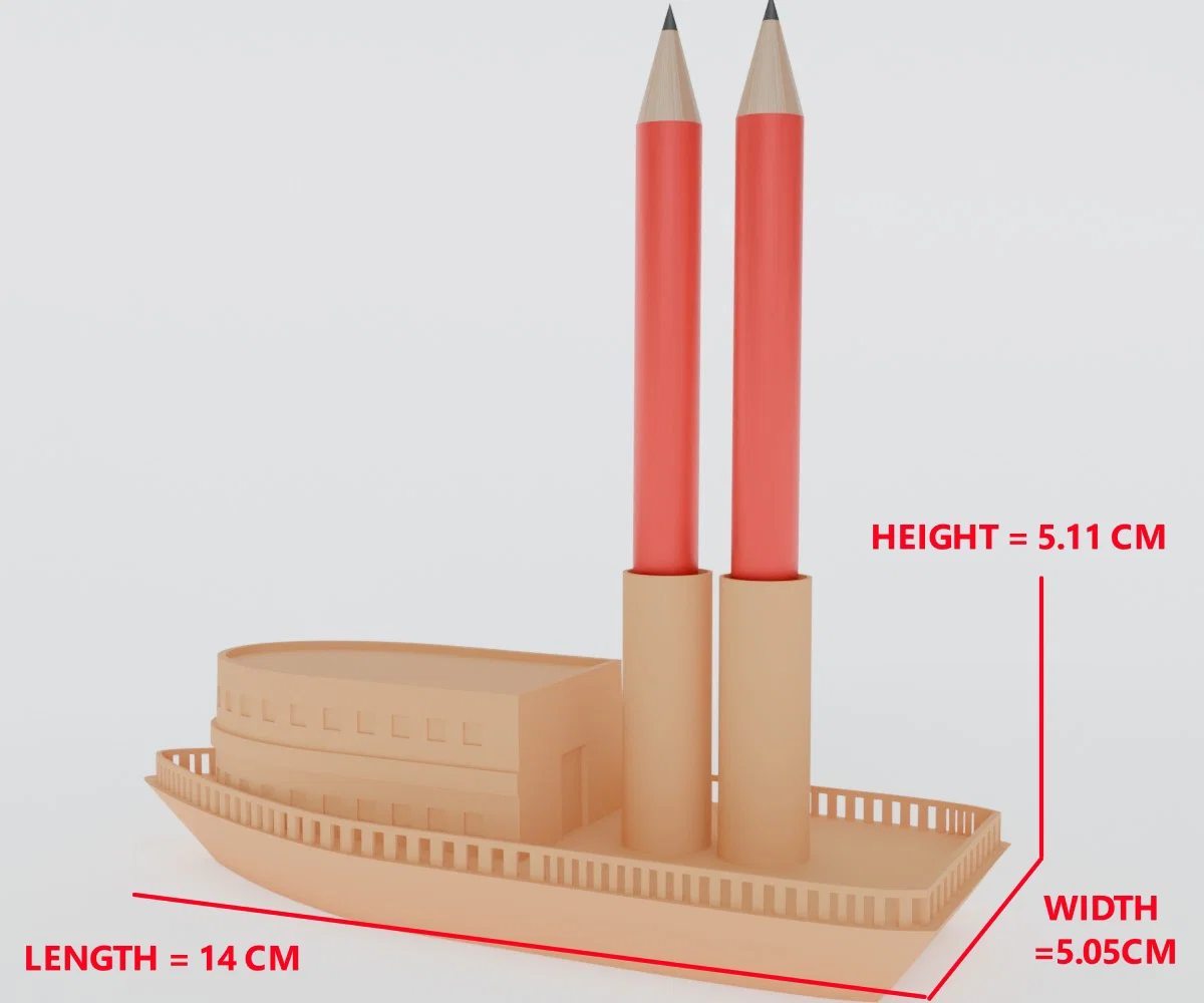 Đây là mẫu ống cắm bút hình tàu hơi nước (Steamship) theo phong cách low poly, hỗ trợ in 3D.