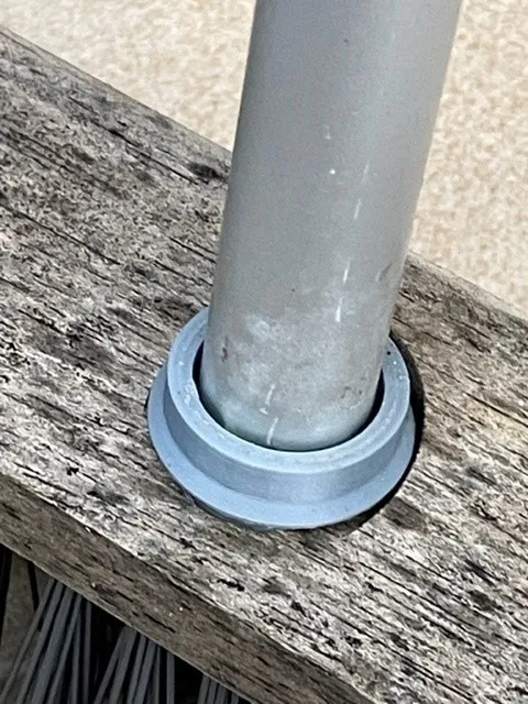 Hai bộ phận bằng PLA để sửa chữa một cây chổi có tay cầm bằng nhôm 20 mm và một bàn chải bằng gỗ.