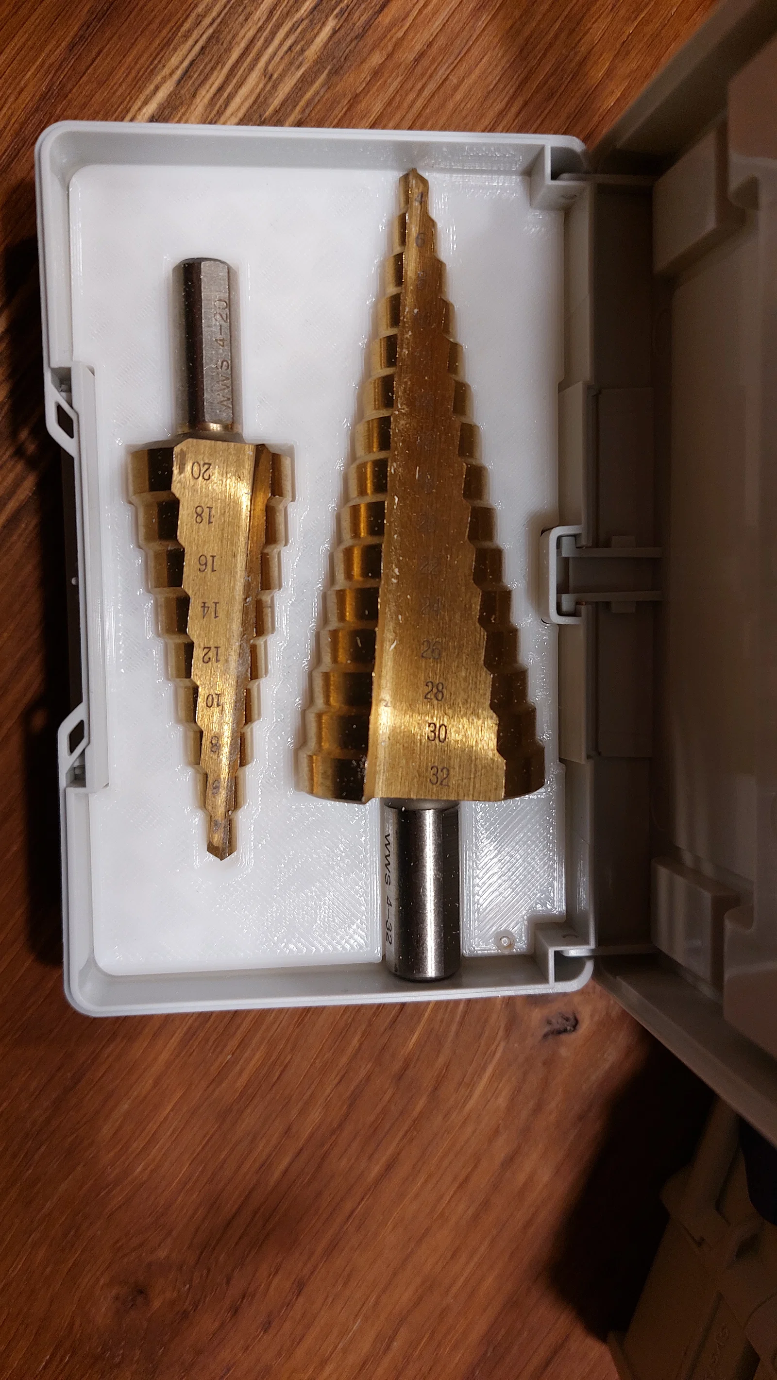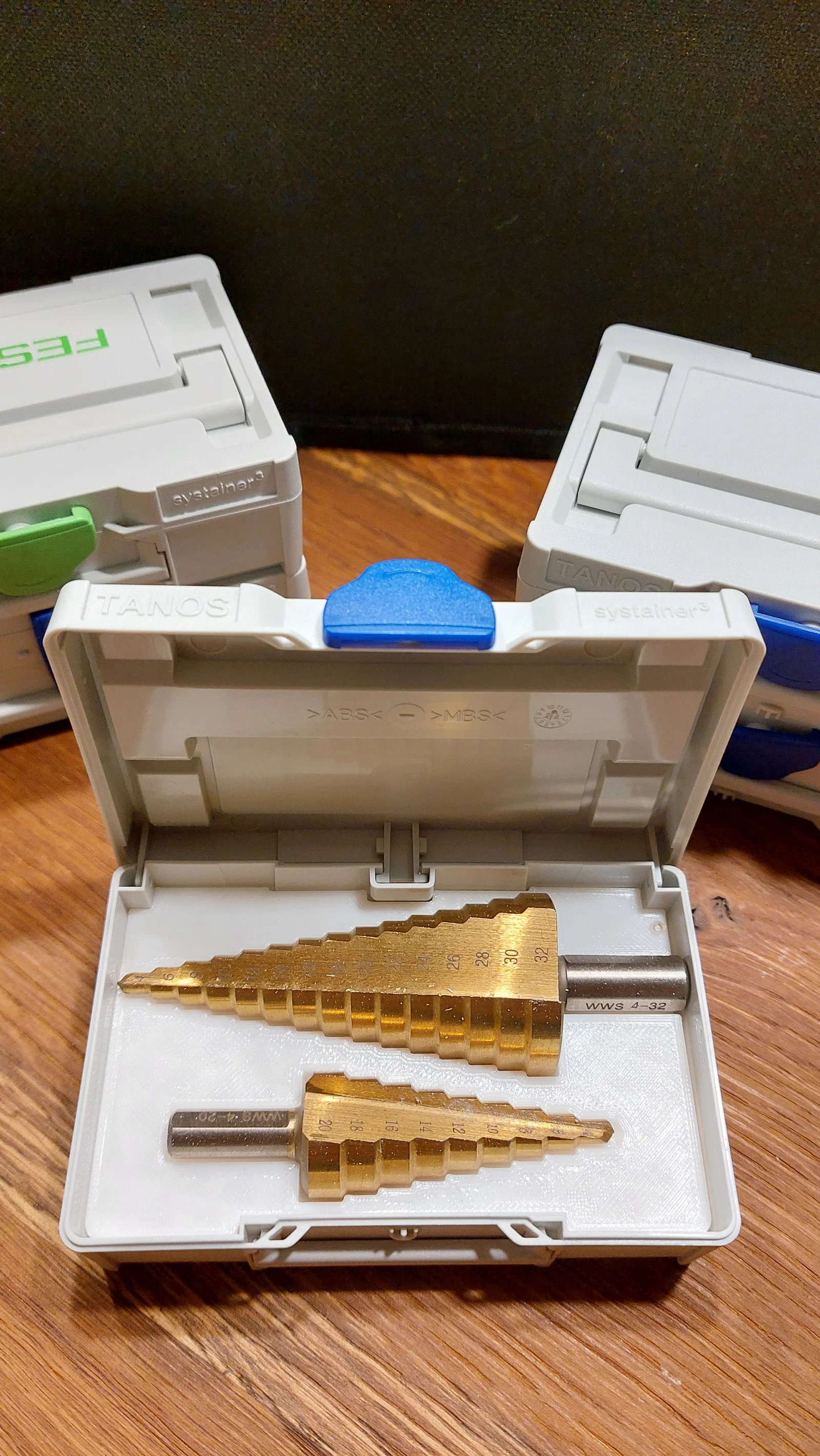 Giúp các mũi khoan bậc (kích thước 32mm & 20mm hoặc 28mm & 20mm) của bạn được sắp xếp gọn gàng trong một chiếc hộp xếp chồng đẹp mắt. Được in bằng nhựa PLA màu trắng, không cần hỗ trợ (support). Tôi đã thiết kế một vài mẫu khay chèn cho chiếc Tanos Systainer³ XXS 33 của mình để giúp bảo quản dụng cụ ngăn nắp hơn. Hãy xem thêm các mẫu thiết kế khác của tôi nhé.