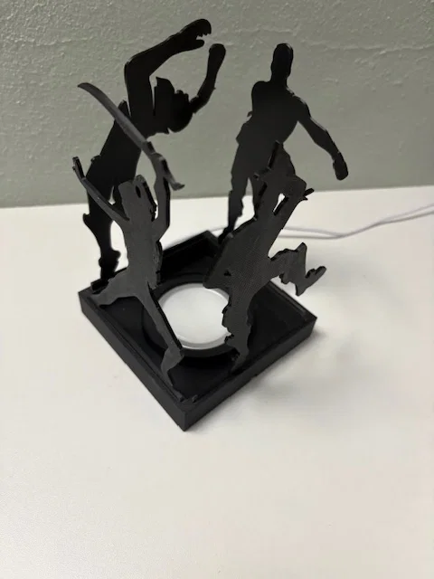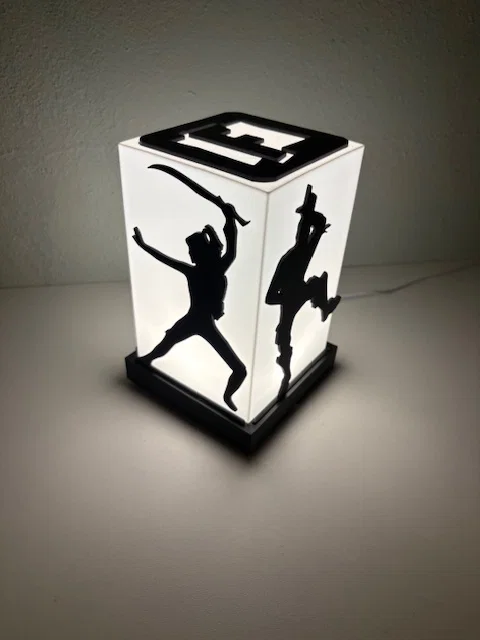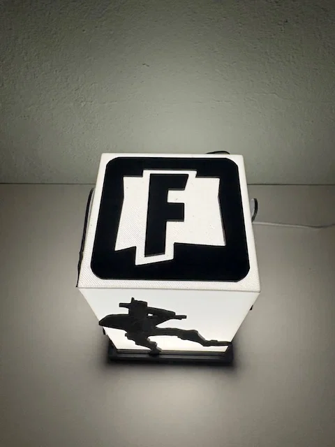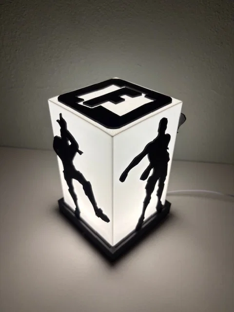 Đèn ngủ Fortnite, cực kỳ hợp để đặt trên bàn làm việc, bàn đầu giường hoặc phòng khách. Phần chụp đèn được thiết kế để trượt vào đế, nơi chứa đèn LED 001 hoặc loại tương tự. Bạn có thể chọn trong số 12 hình bóng (silhouette) nhân vật Fortnite khác nhau, cũng được thiết kế để trượt vào các khe có sẵn trên đế. Vì các hình này không cố định, bạn có thể thay đổi nhân vật tùy thích nếu in hết cả 12 mẫu.