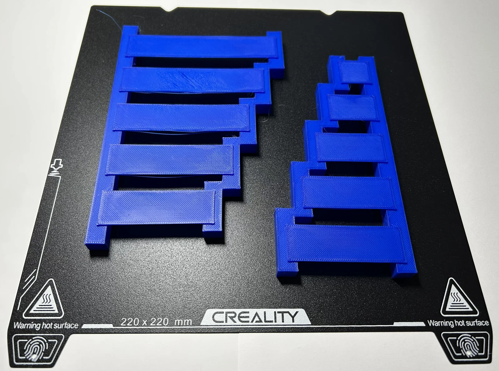 Lưu ý: Các mô hình lớn có phần cầu được đặt phía trên các trụ, chúng được thiết kế có chủ đích để nằm chồng lên trên nhằm cô lập các lớp tạo nên cầu. Mô hình nhỏ có phần cầu được thiết kế để chuyển đổi từ kiểu lớp trụ sang kiểu lớp cầu. Cả hai đều được thiết kế cho chiều cao lớp (line height) 0.2mm và 5 lớp trên cùng (top layers).