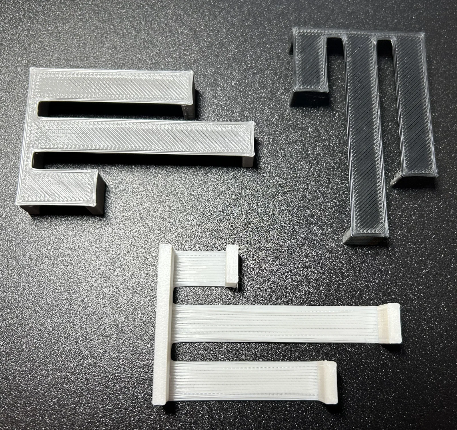 Hai mô hình lớn không phải là các bài kiểm tra căn chỉnh (nhanh). Chúng được thiết kế để in một 'cây cầu' thực thụ trên cao, đủ rộng để mô phỏng chính xác cách hoạt động của cầu trên các bản in thực tế. Mô hình cung cấp thông tin về số lượng lớp phục hồi (recovery layers) cần thiết để đảm bảo độ ổn định và khoảng cách tối đa mà bạn có thể thực hiện. Rất hữu ích cho mục đích giáo dục: hãy thiết lập tạm dừng (pause) ngay trước khi các trụ được hoàn thành, sau đó quan sát cách nhựa được in trong không trung. Hãy in dọc theo trục X và Y để xem hành vi của cầu thay đổi ra sao. Sử dụng phần mềm cắt lớp (slicer) để kiểm tra hoặc điều chỉnh cách các phần/lớp được in và lý do tại sao.