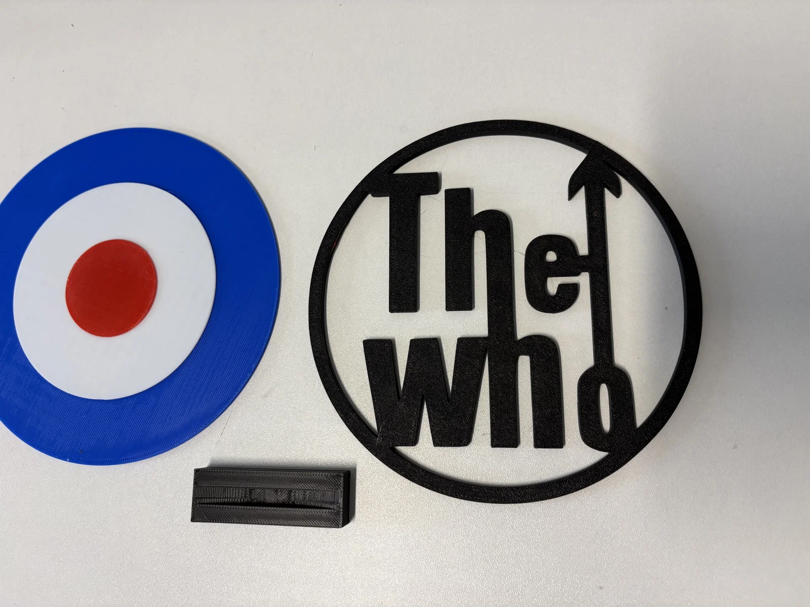 Phần chữ "The Who" được thiết kế để gắn khớp vào tâm (target), sau đó phần này sẽ gắn khớp vào đế. Không cần dùng keo.