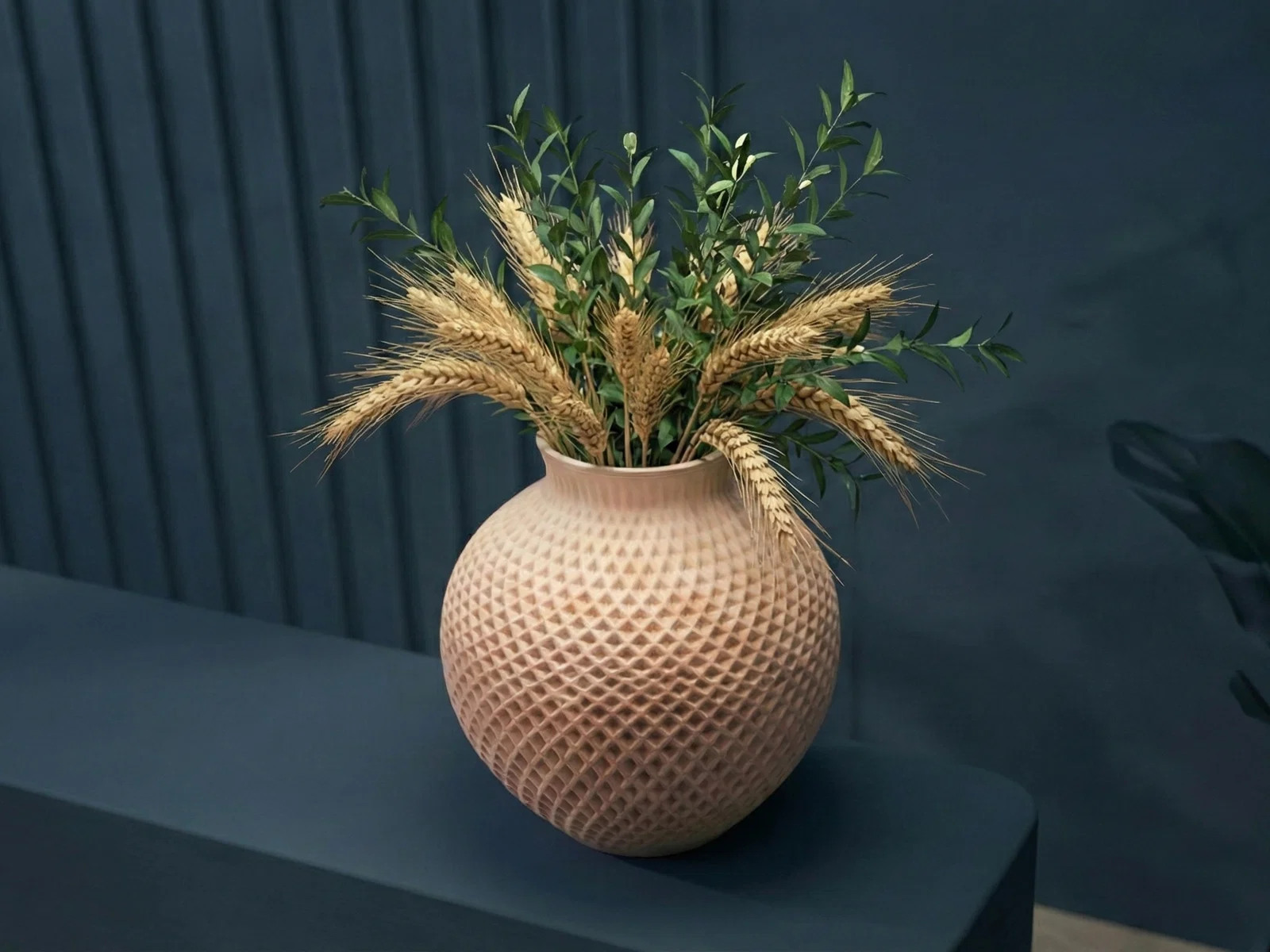Kết hợp giữa thẩm mỹ hiện đại và kết cấu tự nhiên, bình hoa Golden Harvest được thiết kế để mang đến vẻ đẹp tinh tế và ấm cúng cho không gian sống của bạn. Cấu trúc lưới kim cương tham số 💎 tạo nên chiều sâu đầy mê hoặc thông qua hiệu ứng ánh sáng và bóng đổ cực kỳ bắt mắt.