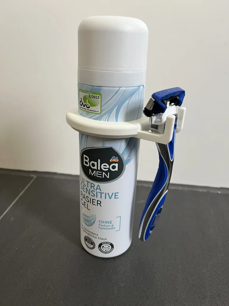 Bạn đang tìm chỗ để dao cạo râu? Với mẫu giá đỡ đơn giản này, bạn có thể gắn trực tiếp dao cạo vào bình kem cạo râu một cách gọn gàng. Thiết kế linh hoạt, dễ in, không cần hỗ trợ và có thể điều chỉnh kích thước tùy ý.