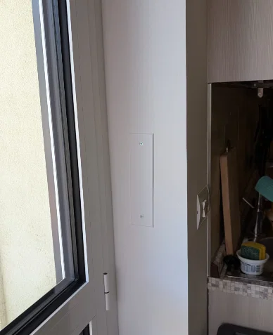 Giải pháp đơn giản và gọn gàng để che các lỗ khoét tường của cửa cuốn không còn sử dụng.