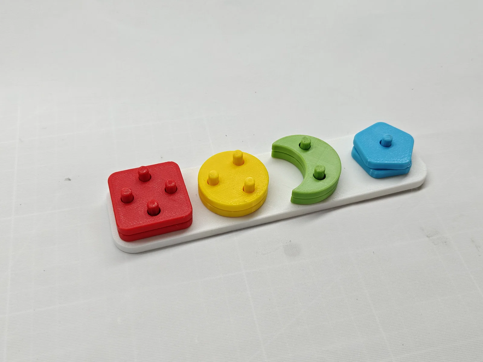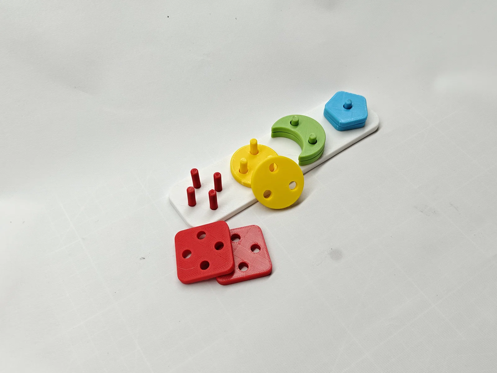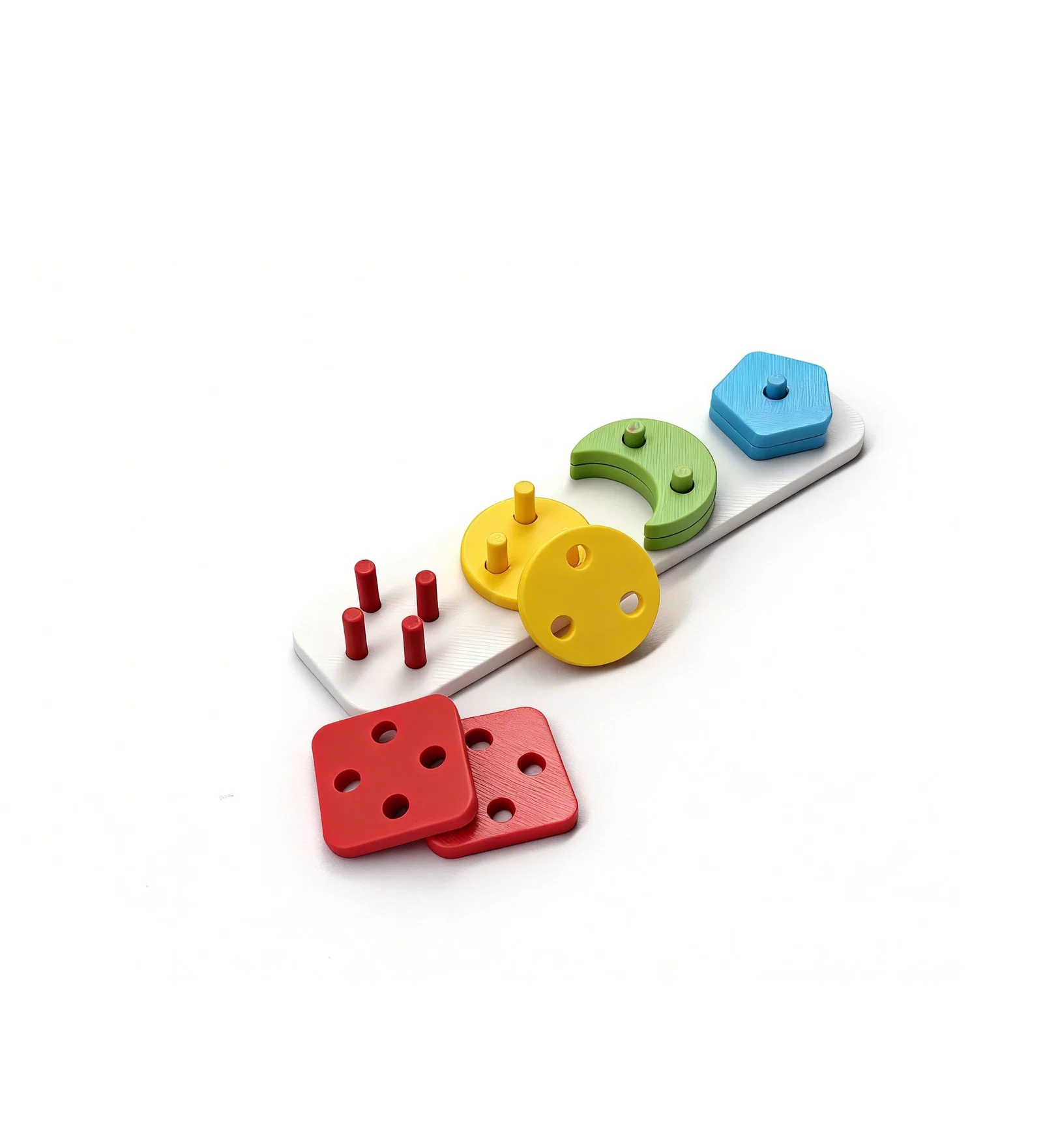 Món đồ chơi thông minh giúp bé từ 0-3 tuổi rèn luyện kỹ năng nhận biết màu sắc, hình khối và phối hợp tay mắt. Thiết kế hình học đơn giản, an toàn, dễ in bằng nhựa PLA và không cần keo dán khi lắp ráp.