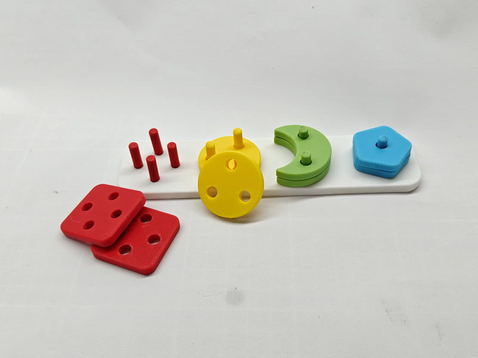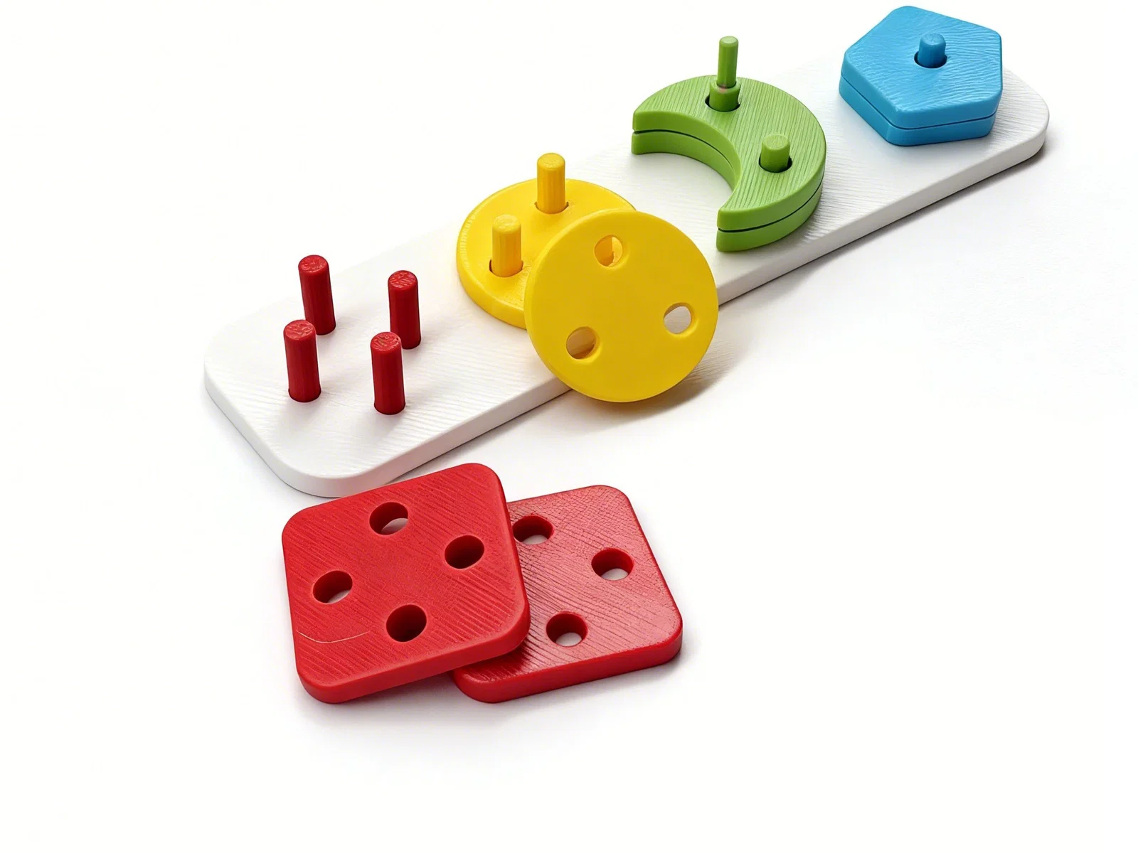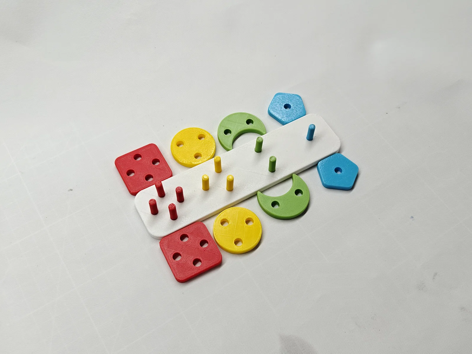 Món đồ chơi thông minh giúp bé từ 0-3 tuổi rèn luyện kỹ năng nhận biết màu sắc, hình khối và phối hợp tay mắt. Thiết kế hình học đơn giản, an toàn, dễ in bằng nhựa PLA và không cần keo dán khi lắp ráp.