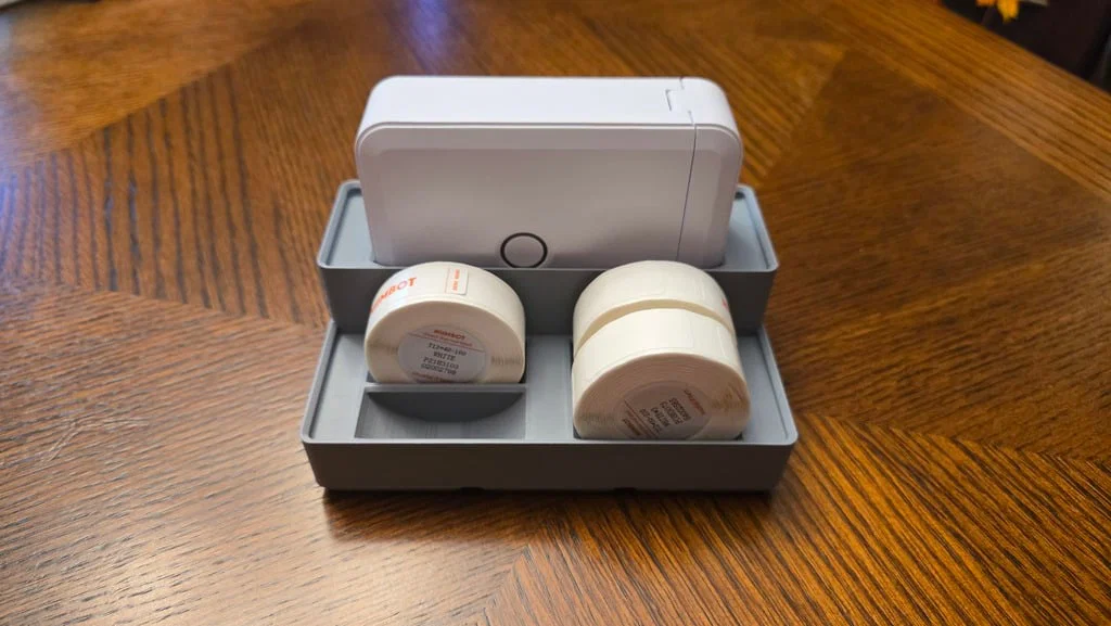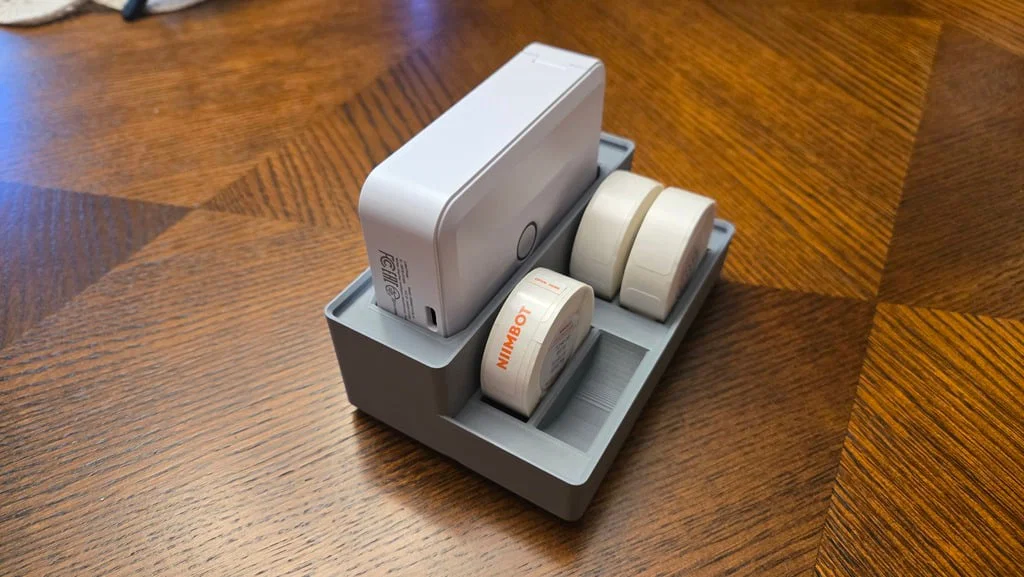 Khay đựng tiện lợi cho máy in nhãn Niimbot D110 phiên bản nâng cấp, tương thích hệ thống Gridfinity. Thiết kế tích hợp thêm 4 ngăn chứa cuộn nhãn giúp bàn làm việc của bạn luôn gọn gàng và ngăn nắp.
