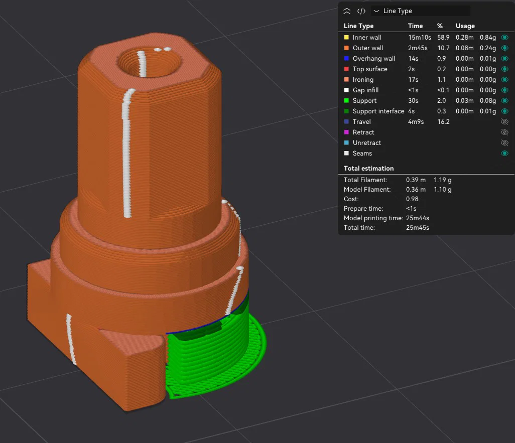 Cái điều khiển xe MJX của con trai mình bị lỗi, vô lăng không thể tự trả về vị trí giữa được. Vì vậy, mình đã mở cái điều khiển ra, phát hiện linh kiện bị hỏng và thiết kế lại một phiên bản chắc chắn hơn. Linh kiện này dùng cho điều khiển xe MJX Hypergo H12Y. Mình đã in thử và kiểm tra bằng nhựa PLA+ 2.0, với 4 lớp vỏ (wall) và độ dày lớp in 0.1 mm. Cần đặt một chút support bên dưới, không cần dùng brim. Được thiết kế bằng Fusion 360, anh em xem file đính kèm nhé.