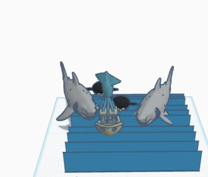 Mô hình 3D Benchy bị săn đuổi bởi cá mập và bạch tuộc đầy hài hước