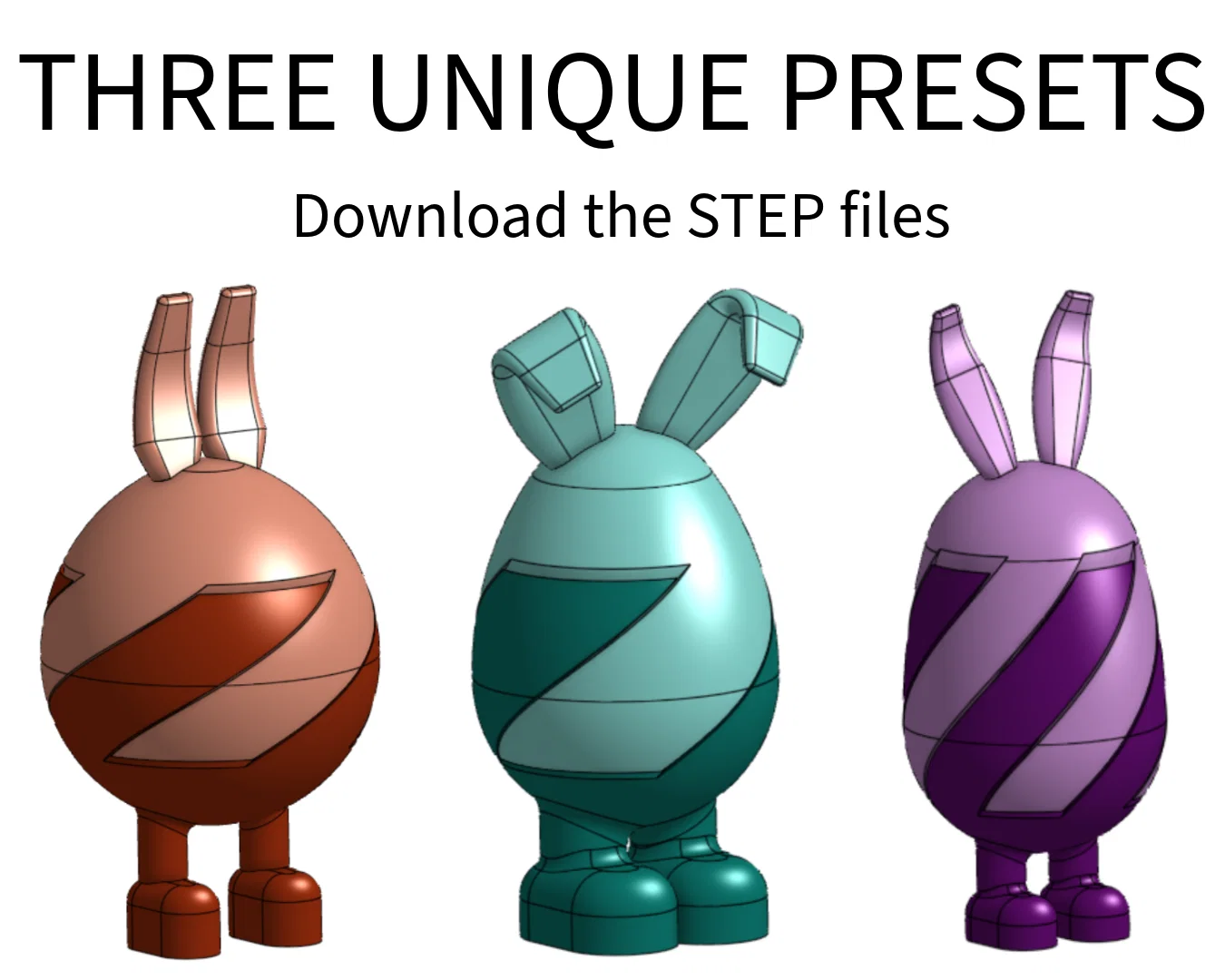 Đây là một mẫu hộp đựng trứng phục sinh (Easter egg) có thể tùy chỉnh cực kỳ linh hoạt. Khoang bên trong có thể được điều chỉnh kích thước để đựng trứng trong các buổi săn tìm trứng phục sinh, hoặc đơn giản là dùng làm một món đồ trang trí nhỏ xinh.