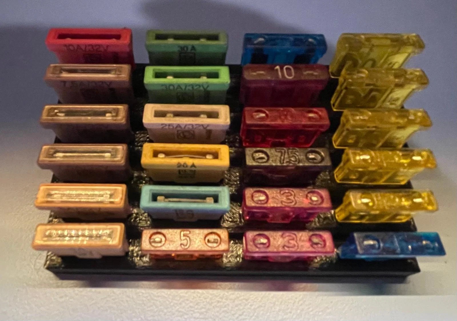 Việc sở hữu một chiếc khay như thế này không chỉ giúp bạn tìm thấy đúng loại cầu chì cần thiết trong tích tắc khi gặp sự cố điện trên xe, mà còn giúp bảo quản các linh kiện quan trọng này tránh bị hư hại do va đập hoặc ẩm ướt. Thiết kế khay được tối ưu để bạn có thể xếp chồng hoặc đặt cạnh nhau trên kệ tủ đồ nghề, tiết kiệm diện tích tối đa. Bạn có thể in vài cái để phân loại các loại cầu chì thường dùng như 5A, 10A, 20A hay 30A theo từng nhóm riêng biệt, cực kỳ tiện lợi cho các buổi bảo dưỡng định kỳ.