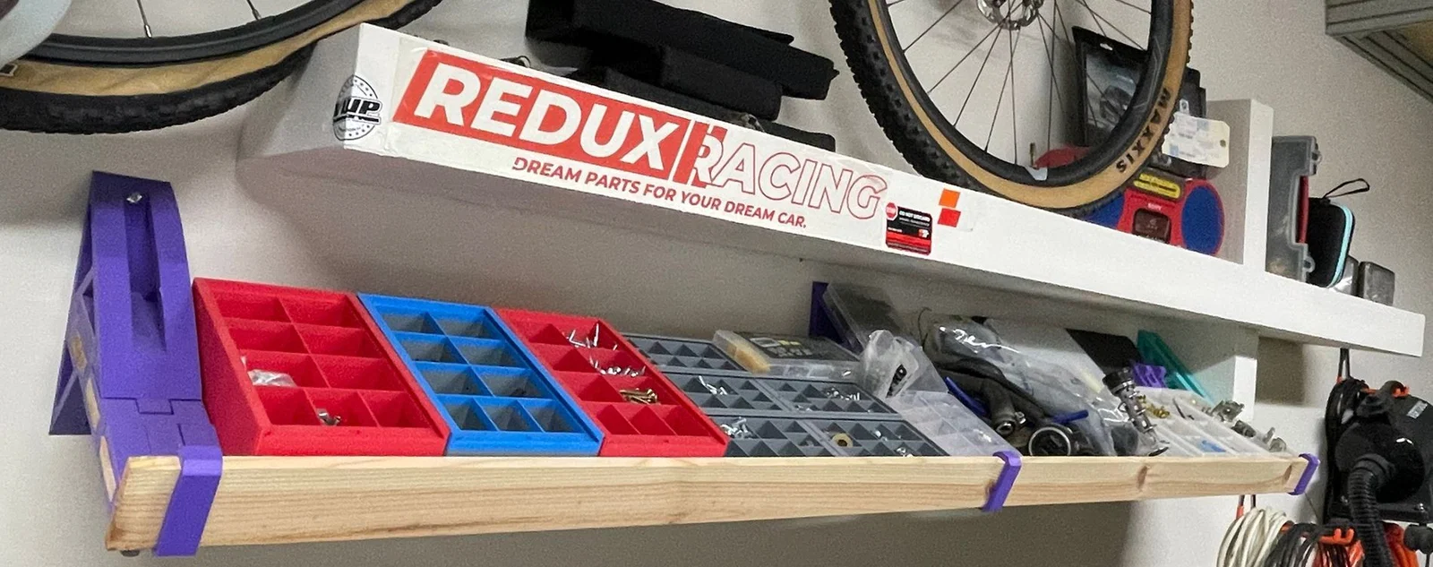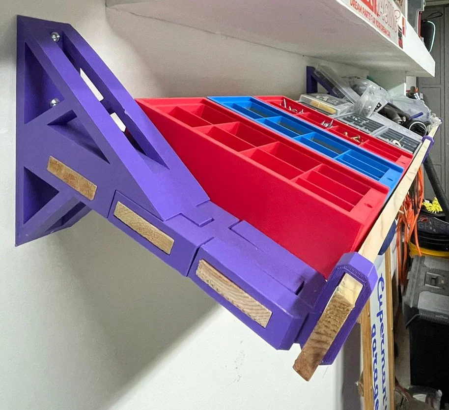 • Tiện ích: Ngoài đựng vật dụng gara, kệ còn rất phù hợp để trưng bày các khay linh kiện nhỏ hoặc lưu trữ các cuộn dây in 3D một cách gọn gàng, dễ lấy.