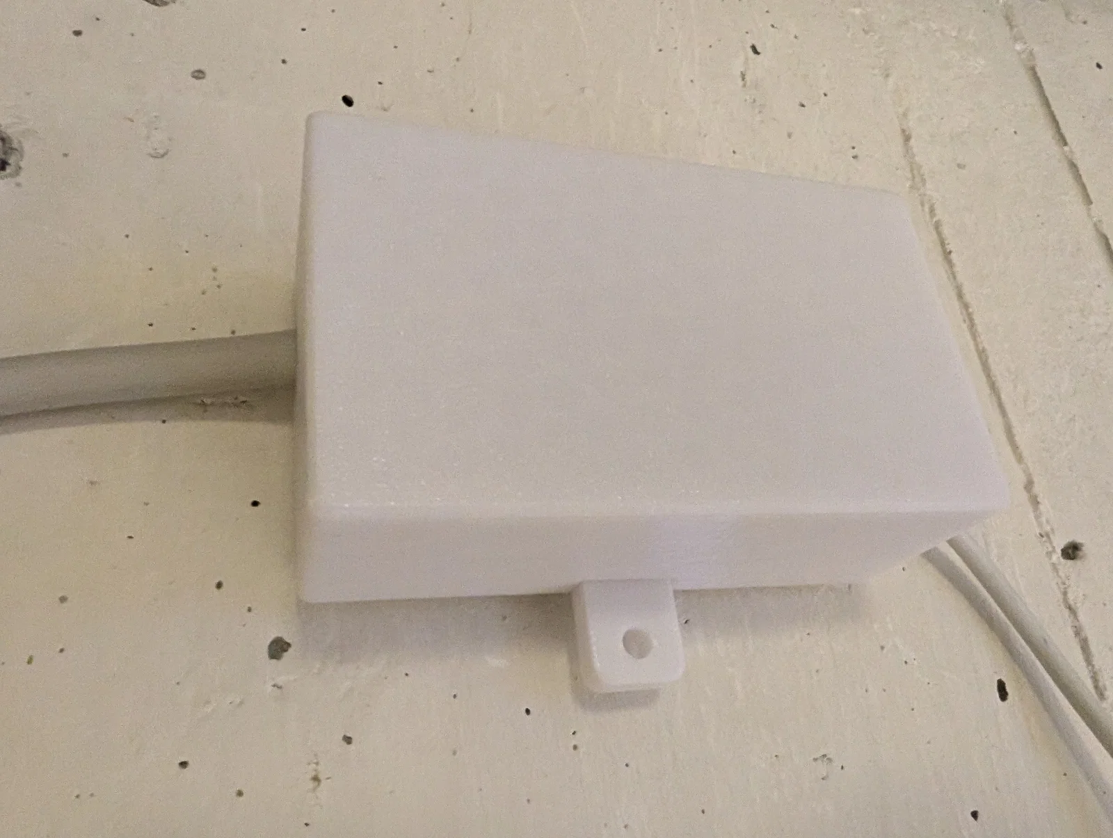 Một mẫu vỏ bảo vệ cho HmIP-PCBS rất dễ in. Bạn không cần dùng support (lưu ý hãy in phần nắp trong tư thế úp ngược). Để giữ dây cáp chắc chắn, bạn có thể dùng dây rút để cố định. Phần nắp được bắt vít vào đế bằng 2 con ốc đầu bằng M4x12. Các lỗ gắn bên hông có kích thước M5 với khoảng cách 78mm.