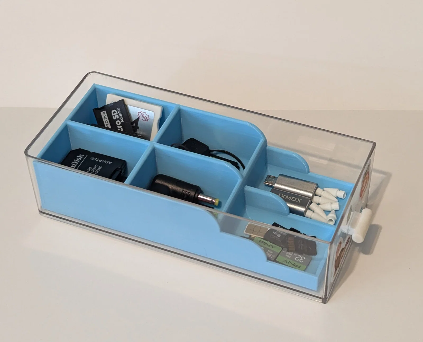 Giải pháp vách ngăn tiện lợi giúp bạn sắp xếp thẻ nhớ và các phụ kiện nhỏ trong ngăn kéo bàn làm việc. Thiết kế đơn giản, dễ dàng điều chỉnh kích thước để phù hợp với nhiều loại hộp đựng khác nhau.