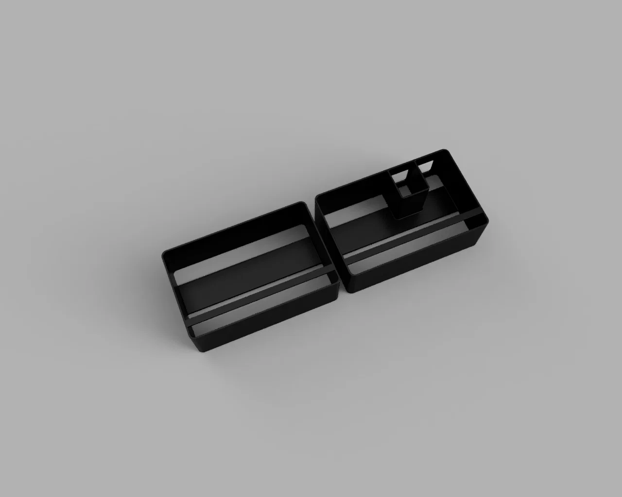 Đây là một vài mẫu kệ treo đơn giản mà mình thiết kế chủ yếu để dùng trong phòng tắm. Bạn có thể dùng kệ phẳng để đựng thuốc, các chai lọ nhỏ hoặc bất cứ món đồ gì mình thích. Mẫu kệ thứ hai được thiết kế với một lỗ ngắn để cắm máy cạo râu, dao cạo hoặc vật dụng tương tự, và một lỗ cao hơn để cắm bàn chải đánh răng hoặc lược. Các mẫu kệ này được thiết kế để gắn lên tường bằng miếng dán Command. Bạn nên dùng miếng dán Velcro loại cỡ trung để có thể dễ dàng tháo rời ra khi cần vệ sinh, rửa sạch hoặc thay mới, hay đơn giản là tháo hẳn kệ ra khỏi tường.