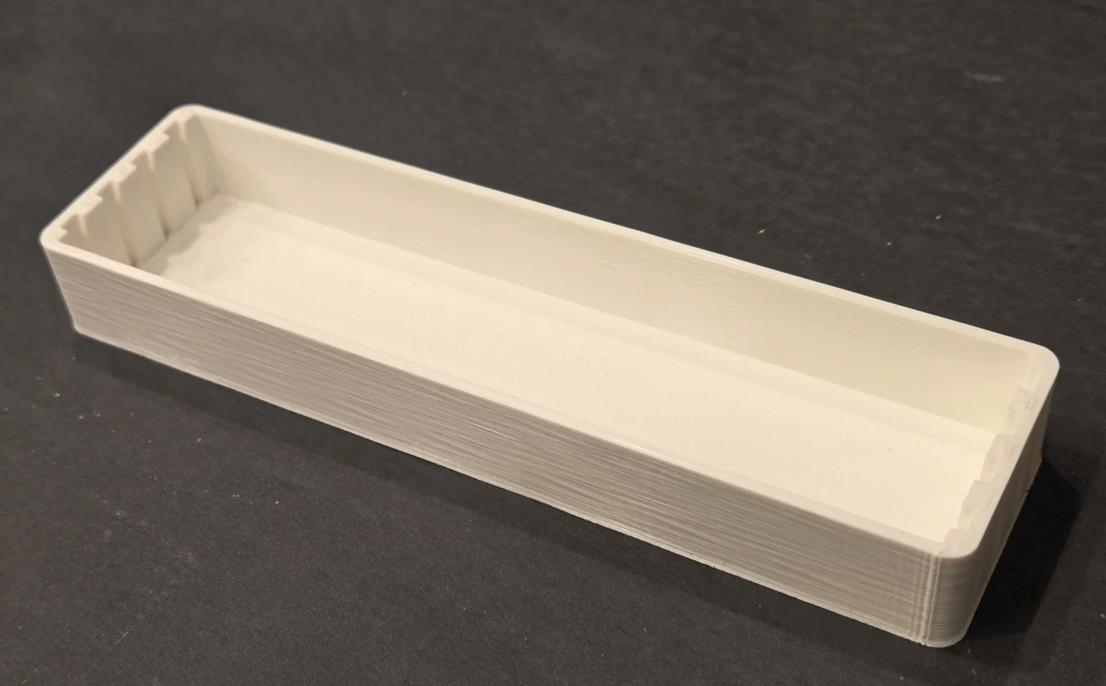Một chiếc khay đựng đơn giản và thực dụng, được thiết kế để lưu trữ và sắp xếp các thanh RAM DDR4 DIMM một cách an toàn.
