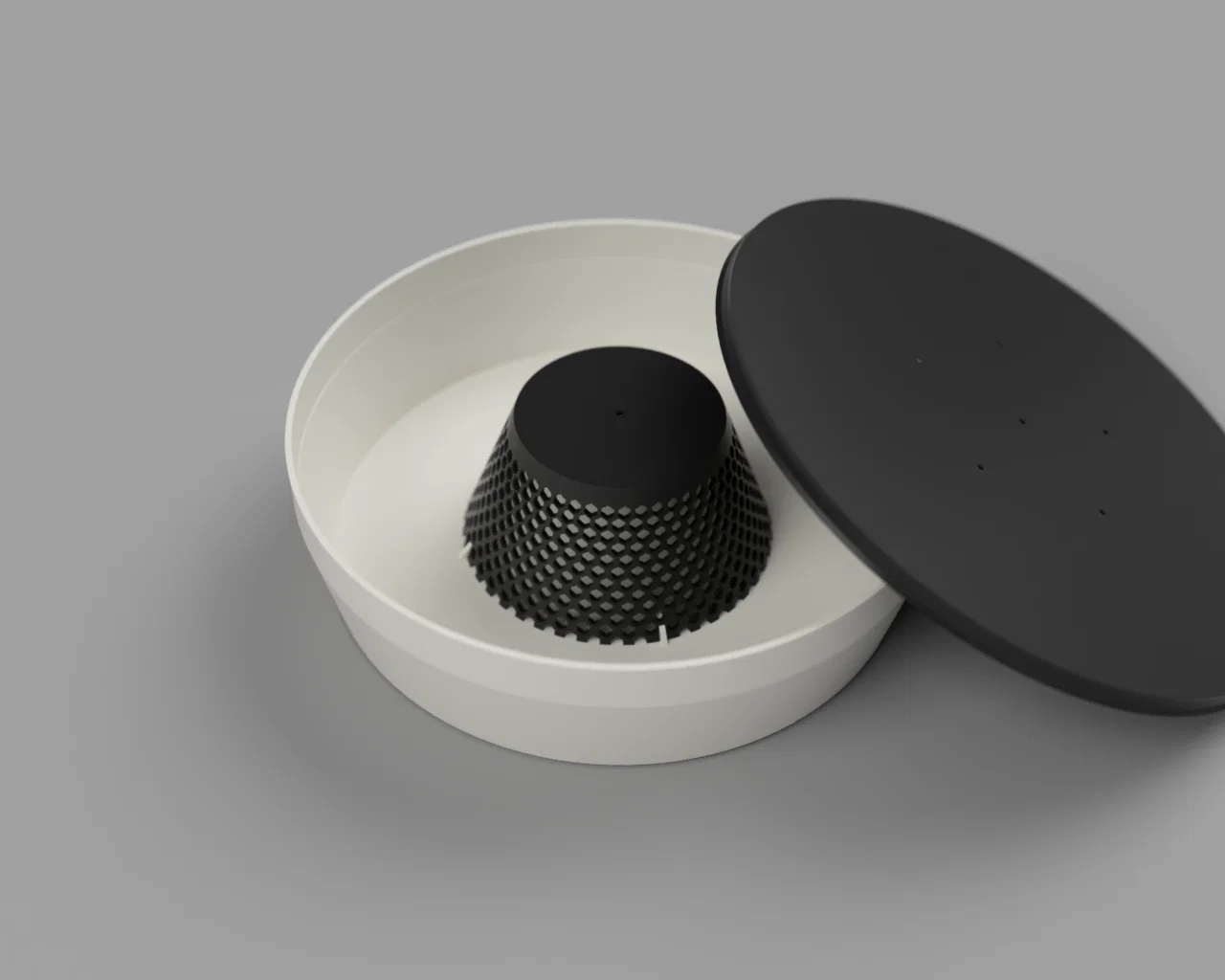 HiveFeeder có dung tích khoảng 1 Lít. Đường kính lớn nhất (phần mép nắp) là 23cm, chiều cao của HiveFeeder là 6cm.
