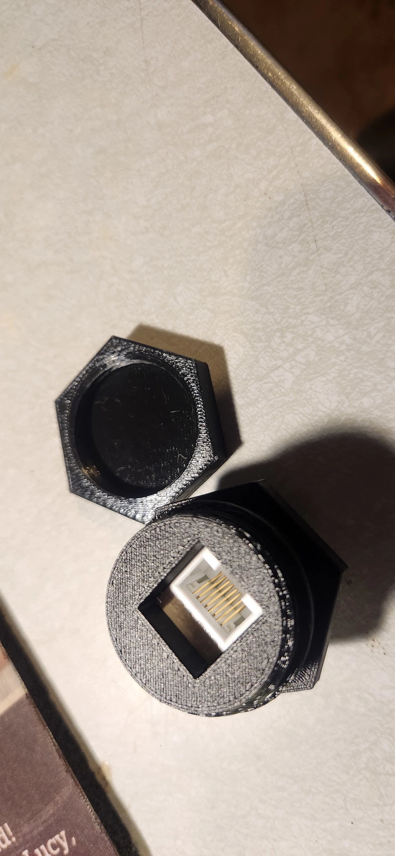 Mình in với độ phân giải 0.15mm bằng nhựa PETG ở chế độ mặc định. Phần ren in ra khá ổn, không cần phải xử lý nhiều. Bạn nên dùng support cho hai thanh ngang giữ đầu nối RJ45. Mình chỉ đặt support riêng cho hai vị trí đó và kết quả rất ổn. Lỗ khoét để lắp thiết bị này vào khoảng 33mm và mình đã sử dụng chuẩn ren ống 35mm ISO tương đương.