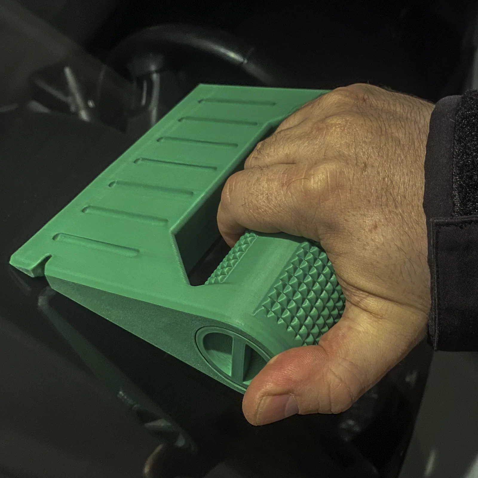 Tay cầm được làm nhám giúp tăng độ bám, đồng thời có thể dùng như một lưỡi phá băng để xử lý lớp sương giá dày và các mảng băng cứng đầu. Một số phiên bản còn tích hợp rãnh làm sạch cần gạt nước, giúp bạn dễ dàng loại bỏ tuyết, bùn và rác bẩn bám trên cần gạt, từ đó khôi phục độ linh hoạt và cải thiện tầm nhìn khi lái xe trong mùa đông. Phần tay cầm còn có tùy chọn ngăn chứa đồ bên trong, rất hoàn hảo để đựng những vật dụng nhỏ cần thiết như dụng cụ đo áp suất lốp, dụng cụ tháo van, miếng vá hoặc các phụ kiện khẩn cấp khác.
