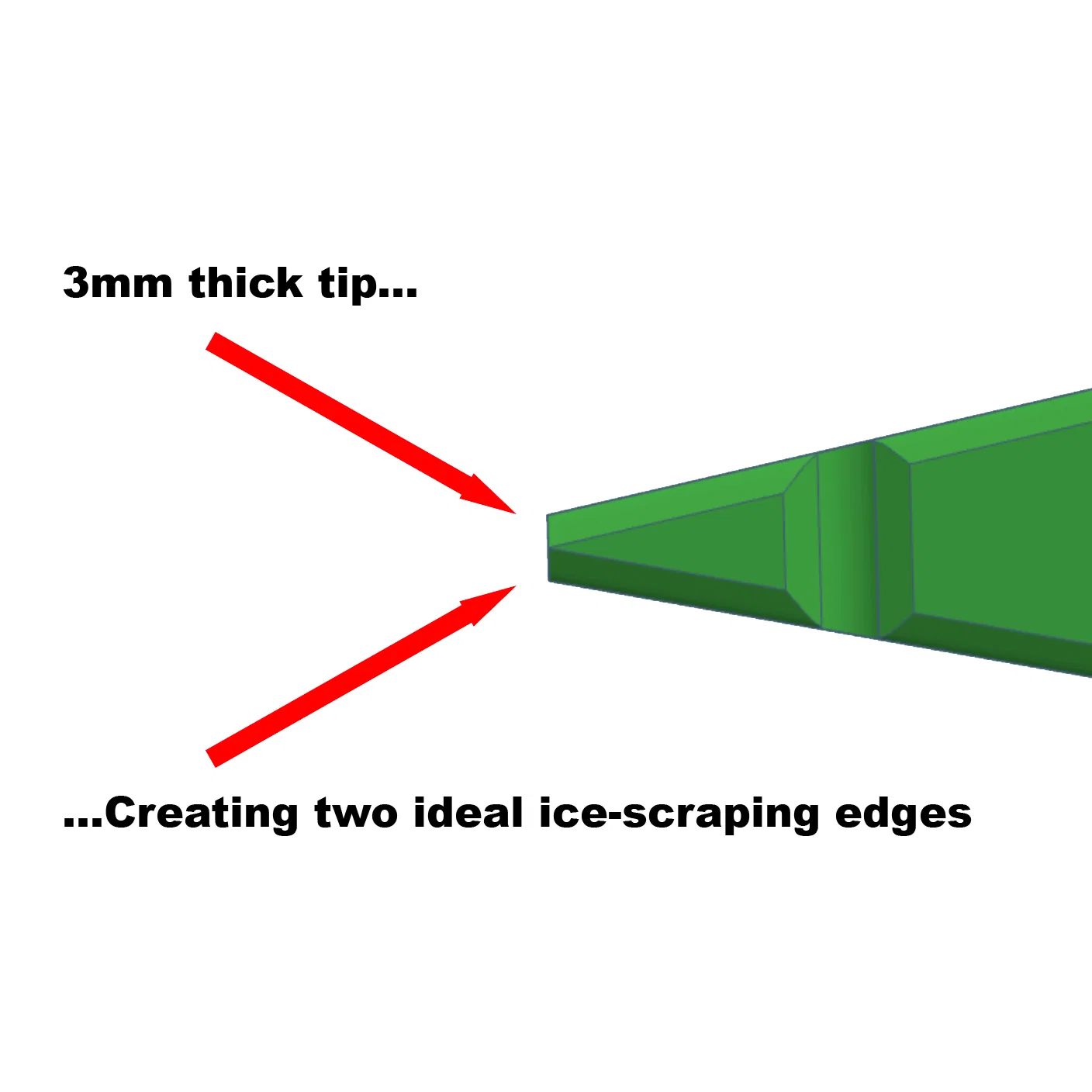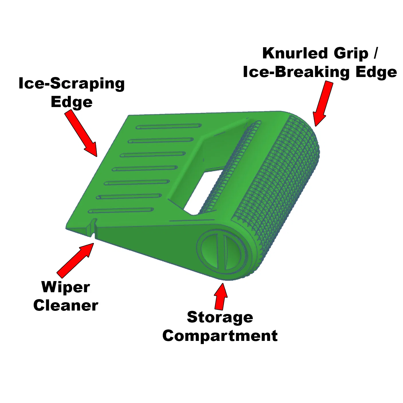 Dụng cụ cạo băng tuyết nhỏ gọn, đa năng giúp loại bỏ băng giá nhanh chóng. Thiết kế hình nêm bền bỉ, tích hợp tay cầm nhám chống trượt, khe làm sạch cần gạt nước và ngăn chứa đồ tiện lợi. In không cần support!