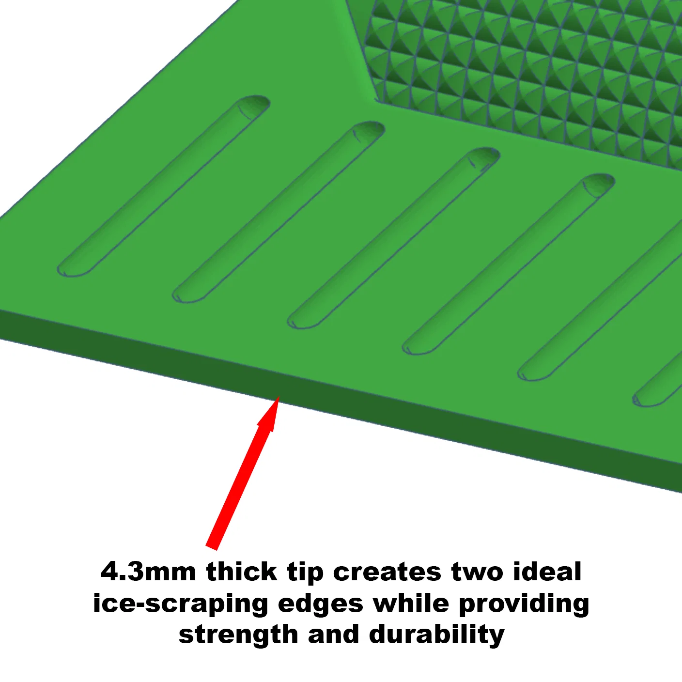 Dụng cụ cạo kính chắn gió mùa đông này là một thiết bị nhỏ gọn, đa năng, được thiết kế để loại bỏ băng giá nhanh chóng, hiệu quả và cực kỳ tiện lợi trong thời tiết lạnh. Thân hình nêm tam giác giúp cạo băng cực kỳ mạnh mẽ, phần đầu được thiết kế với độ dày 4.3 mm, tạo ra hai cạnh cạo băng hiệu quả và bền bỉ, không dễ bị nứt gãy như những loại lưỡi cạo mỏng manh khác.