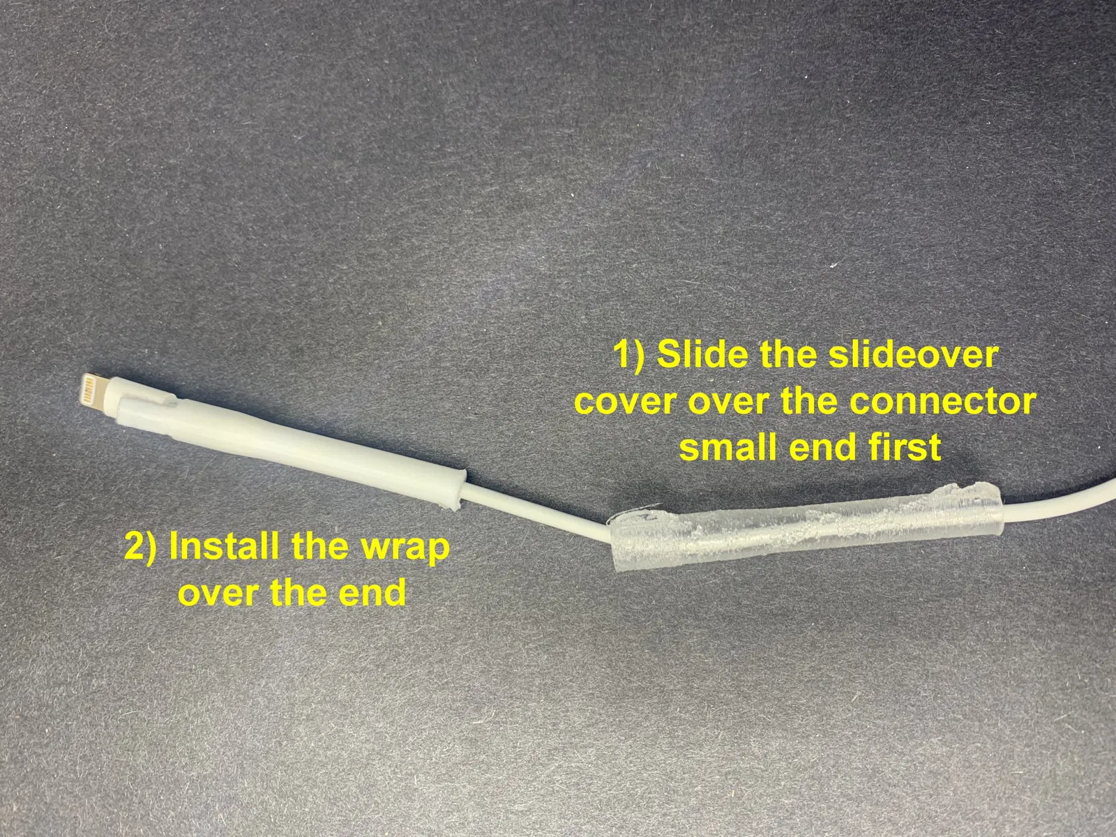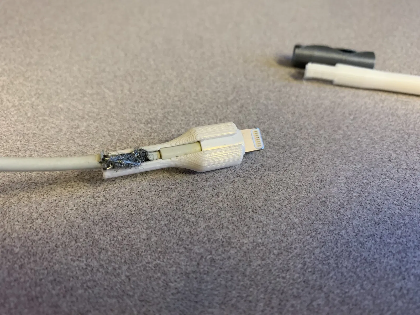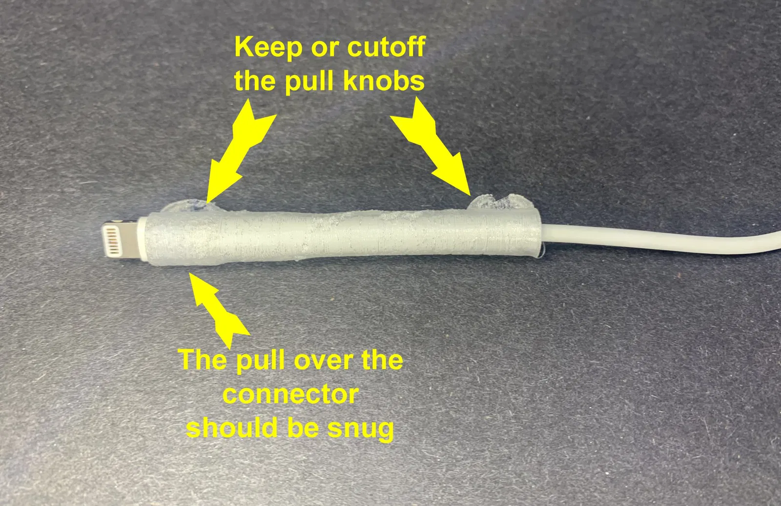 Đây là một bao bọc dây TPU linh hoạt cho cáp iphone… bị hỏng hay không. Tôi đã cập nhật nó thành một lớp bao hoàn toàn bằng TPU. Điều này được thực hiện bằng cách trước tiên trượt một lớp bao TPU qua đầu nối và sau đó lắp đặt lớp bọc.