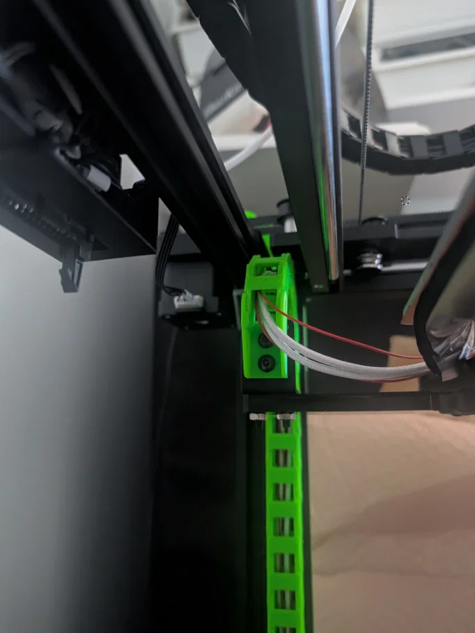 Mình muốn thay thế bàn nhiệt gốc của máy Tronxy X5SA, nhưng do vướng đầu nối XT60 nên không thể tháo CableChain gốc ra nếu không cắt dây hoặc rã mối hàn. Vì mình muốn giữ khả năng thay thế nóng (hot-swap) bàn nhiệt đề phòng trường hợp bị hỏng, nên mình quyết định in một sợi xích dẫn cáp (cable chain) mới. Mẫu Printable Cable Chain của Scops Owl Designs rất tuyệt vời để làm bản gốc. Tất cả những gì mình cần làm là điều chỉnh lại vị trí lỗ bắt vít để khớp với khung đỡ nguyên bản. Lưu ý là mình chỉ nhận ra có thể tháo được xích mà không cần gỡ mảnh cuối cùng SAU KHI đã chỉnh sửa và in xong các chi tiết mới. Dù sao thì mình vẫn chia sẻ ở đây cho bất kỳ người dùng Tronxy nào lỡ tay làm hỏng bộ phận của mình!