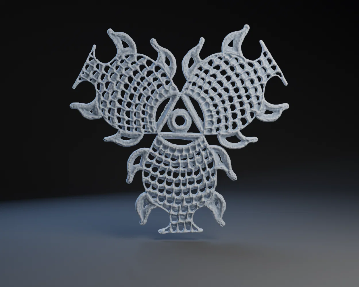 Chúa Ba Ngôi: Giống như Triquetra (nút thắt ở trung tâm mô hình), ba con cá chung một đầu trở thành ẩn dụ hình ảnh hoàn hảo cho Chúa Ba Ngôi (Holy Trinity)—ba thực thể riêng biệt nhưng vẫn là một bản thể.