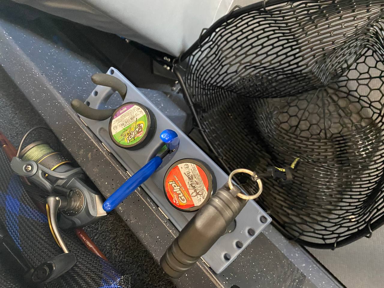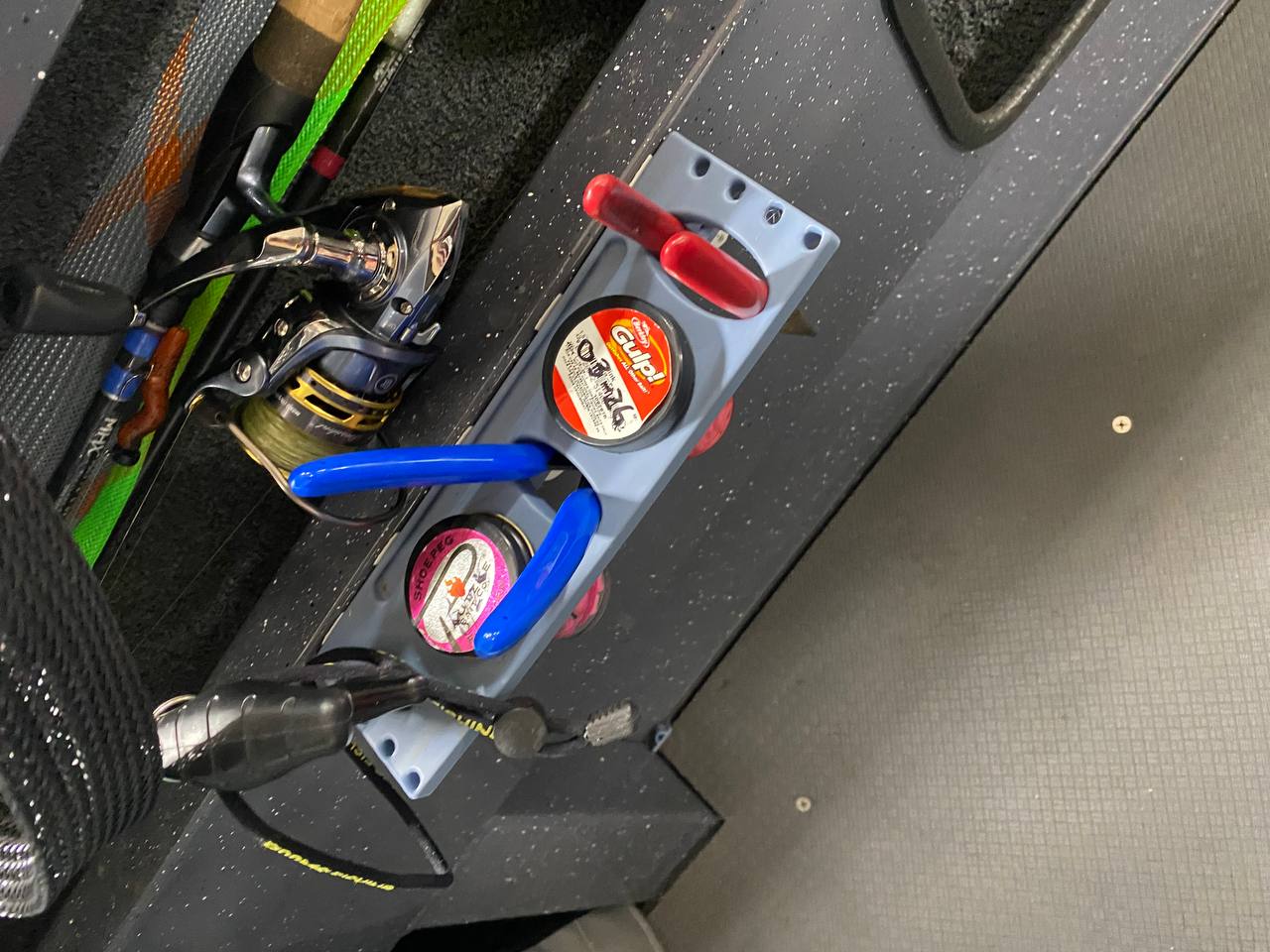 Giá treo tiện lợi dành cho các loại kềm, kìm cắt dây, lưỡi câu và chai mồi. Thiết kế linh hoạt, dễ dàng lắp đặt bằng miếng dán 3M Command hoặc bắt vít trực tiếp trên thuyền của bạn.
