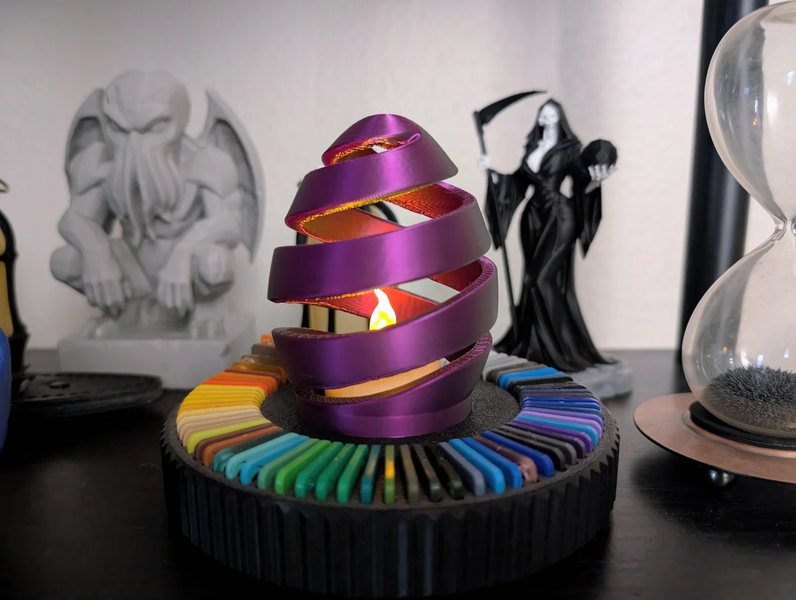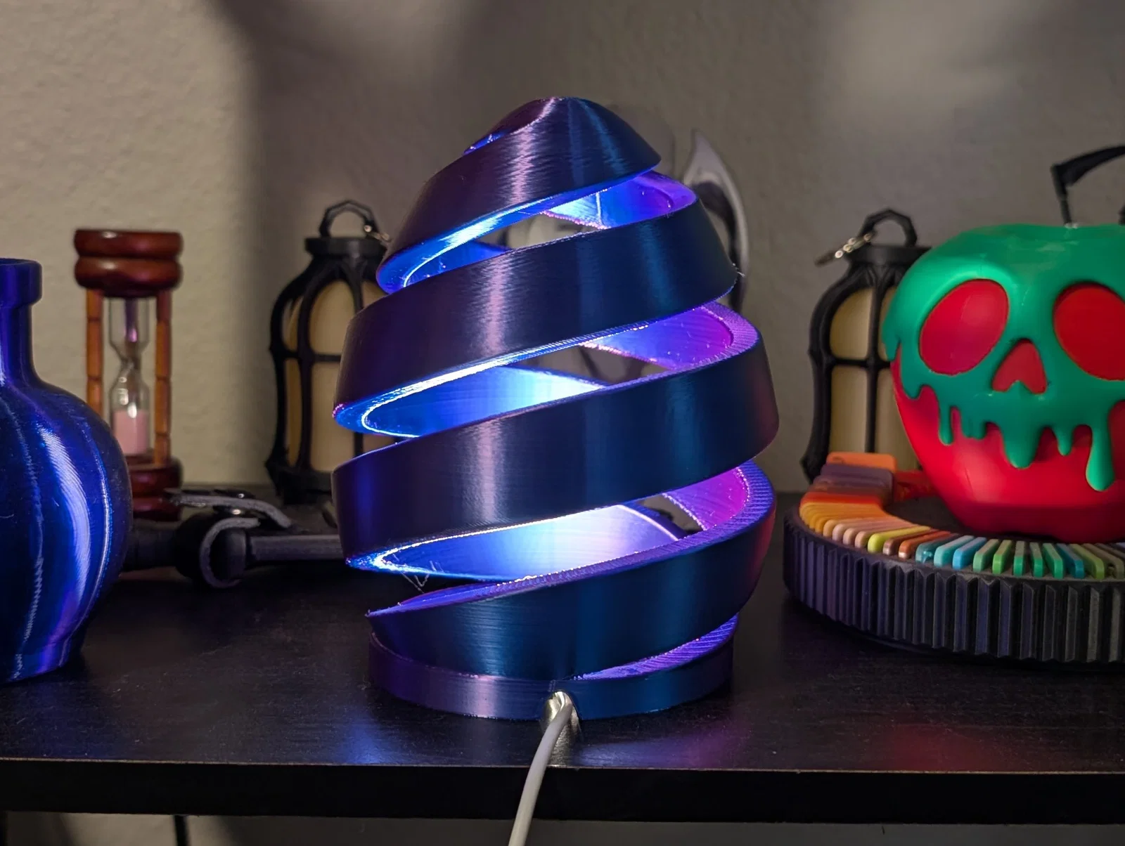 Mẫu đèn hình trứng với thiết kế xoắn ốc độc đáo, in liền khối không cần support. Sản phẩm tương thích với cả nến điện tử (tea light) và các loại đèn LED puck, tạo hiệu ứng ánh sáng đẹp mắt và hiện đại cho không gian nhà bạn.