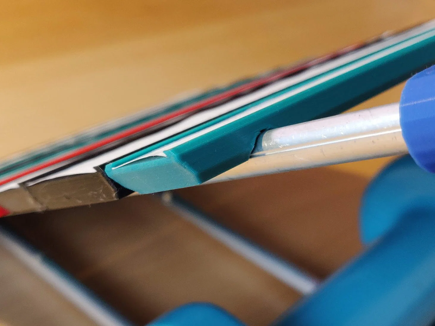 Bạn có thể nhét giấy vào khe dưới của thanh giữ, sau đó dùng giũa hoặc đầu dẹp của dao bỏ túi để ép giấy vào khe trên.