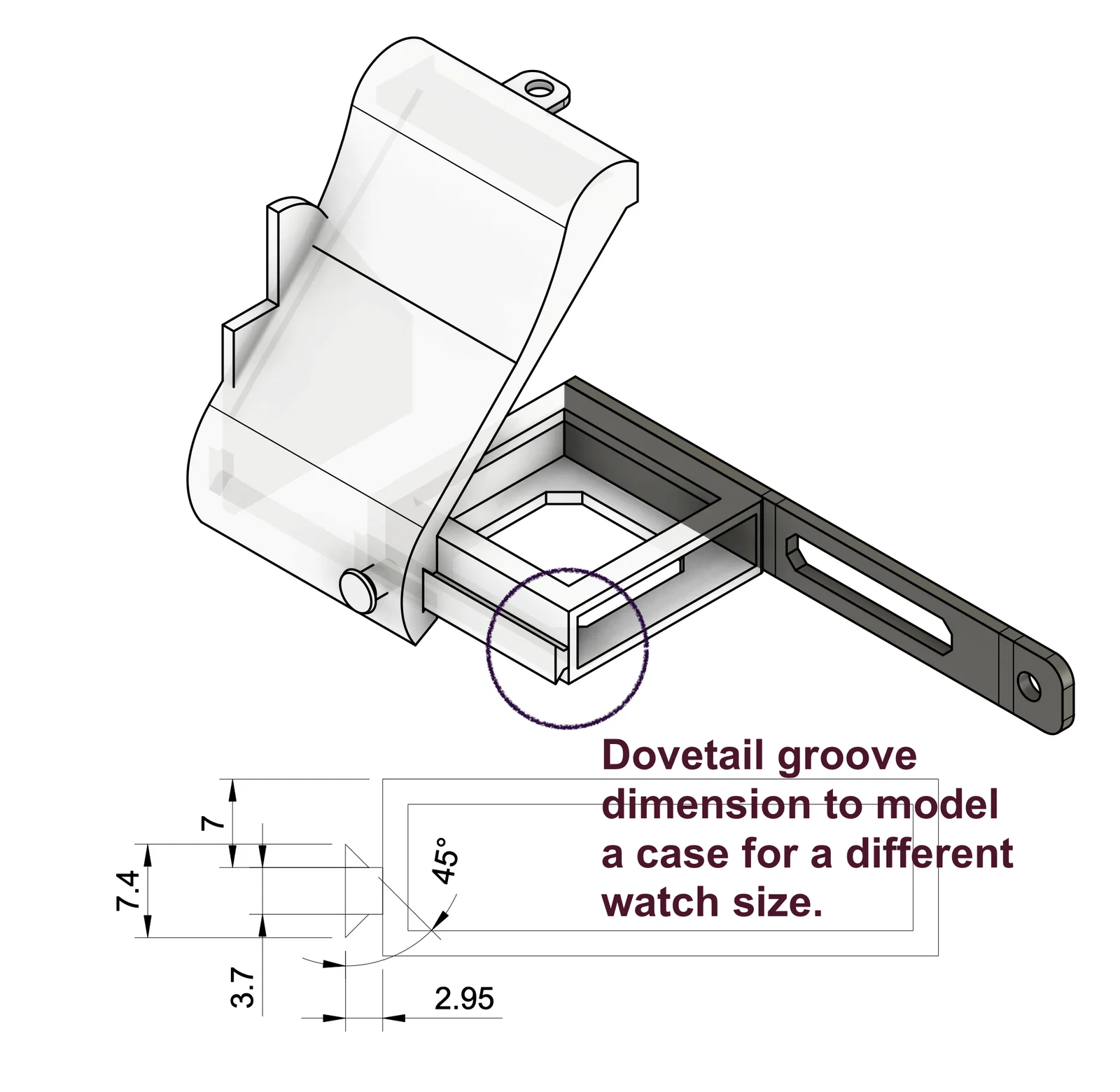 Vui lòng tham khảo kích thước (đơn vị mm) được cung cấp để tùy chỉnh vỏ ốp cho các dòng đồng hồ với kích thước mới.