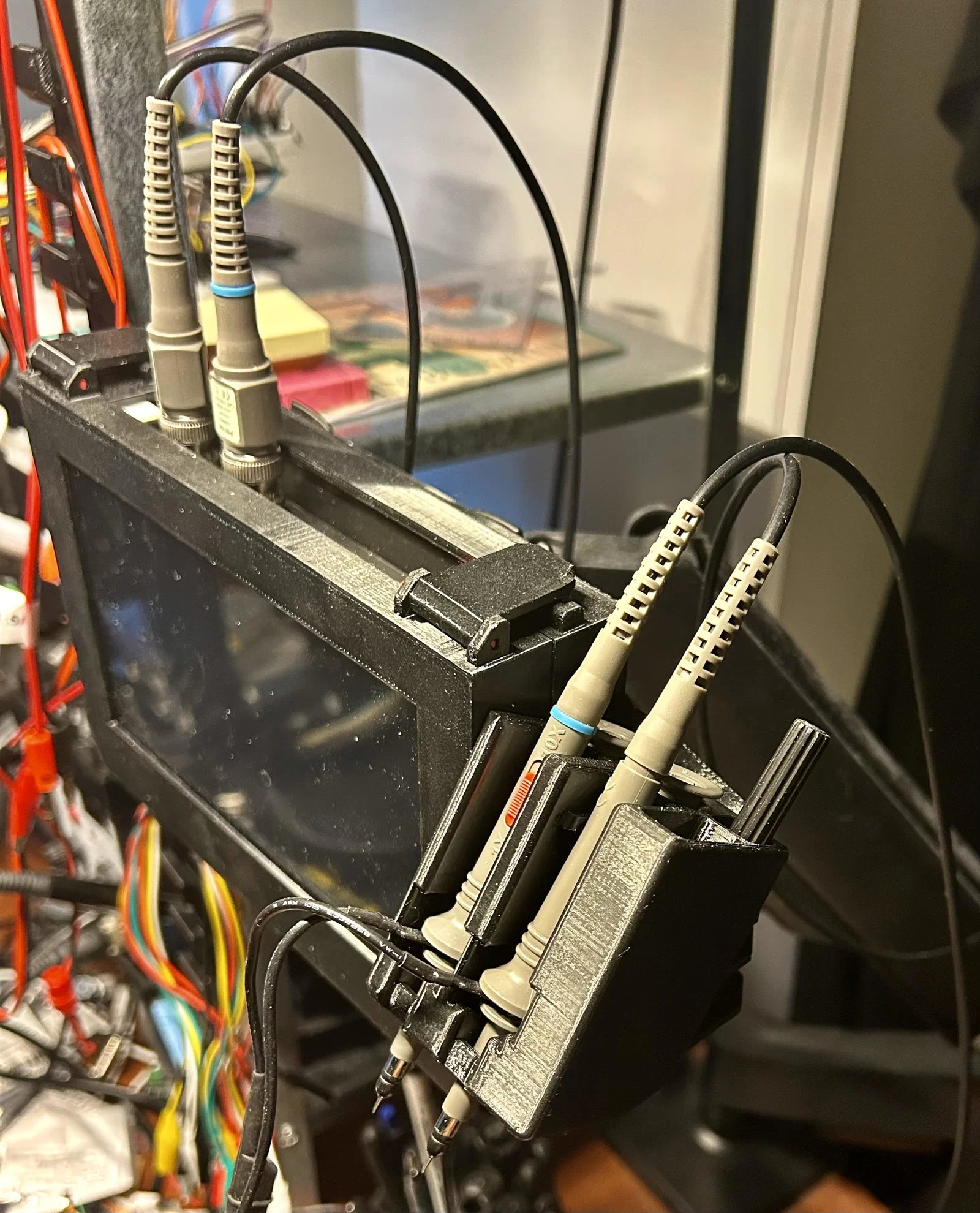 Mẫu thiết kế giá đỡ VESA 75x75 cho máy hiện sóng FNIRSI 1013d, cho phép gắn vào tay treo màn hình tiện lợi. Thiết kế hỗ trợ hot insert cho phụ kiện kẹp đầu dò, khuyến khích in bằng nhựa PETG để đảm bảo độ bền.