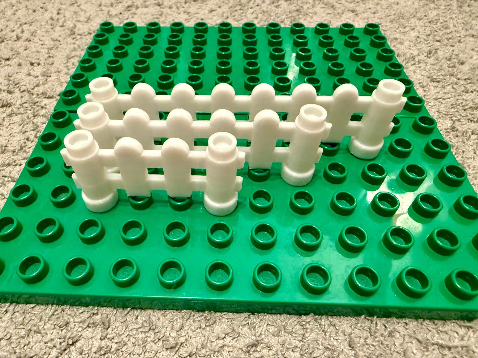 Các mẫu hàng rào này tương thích hoàn toàn với Lego Duplo. Chúng khớp vừa vặn trên các nốt gạch và giữa các hàng, bạn có thể dễ dàng lắp thêm nhiều hàng rào khác hoặc các mảnh ghép Duplo tùy ý.