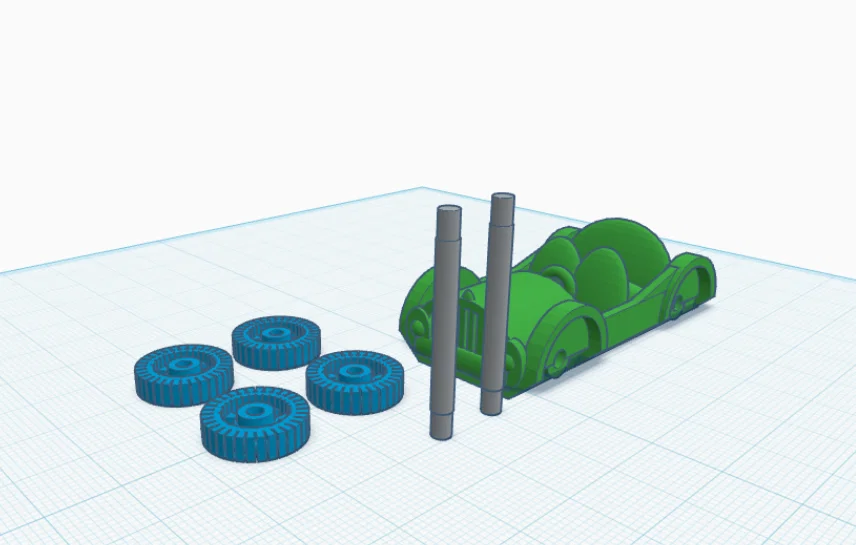 • Cấu trúc bộ phận: Mô hình gồm 7 phần riêng biệt (thân xe, 4 bánh, 2 trục), giúp tối ưu hóa việc sắp xếp trên bàn in.