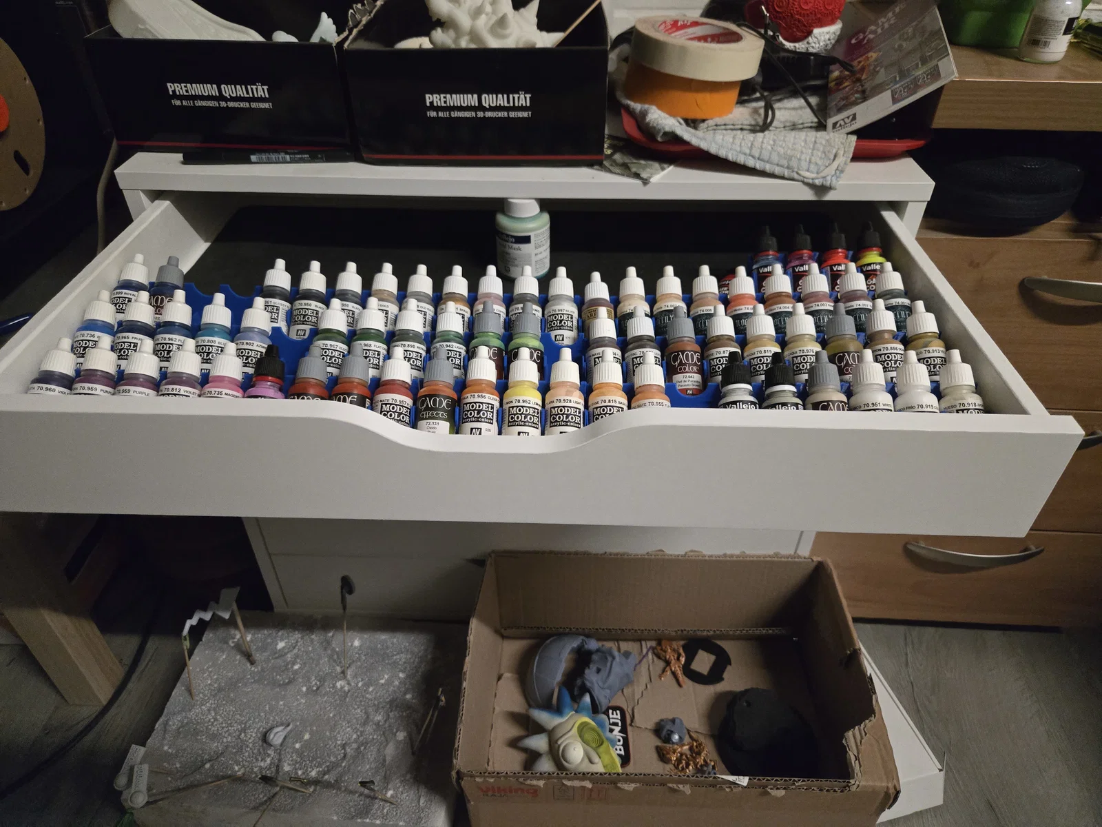 Đây là mẫu in nhanh và dễ dàng để bạn sắp xếp các lọ sơn Vallejo trong ngăn kéo tủ Alex.