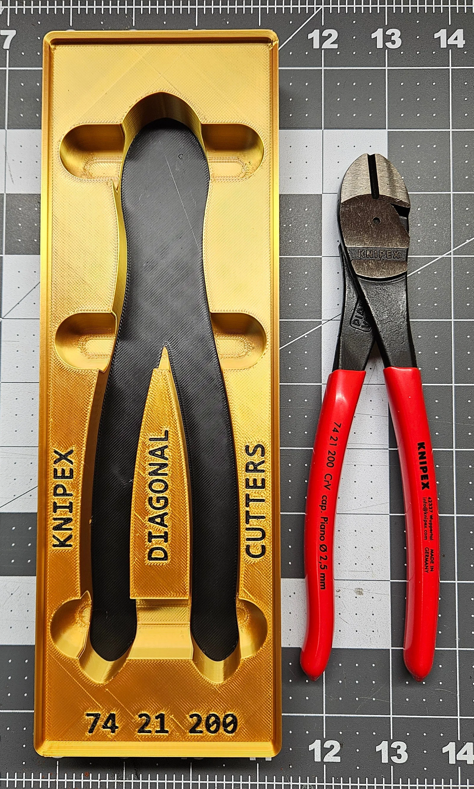 Nếu bạn là một thợ điện chuyên nghiệp hoặc một người đam mê công việc thủ công, chắc hẳn bạn đã quá quen thuộc với chiếc kìm cắt chéo Knipex 74 21 200 danh tiếng. Tuy nhiên, việc cất giữ những công cụ cầm tay đắt tiền này sao cho gọn gàng, dễ lấy và bảo quản được lưỡi cắt sắc bén là một thử thách không nhỏ. Mẫu thiết kế khay đựng 3D này ra đời để giải quyết vấn đề đó, mang đến một giải pháp lưu trữ hoàn hảo theo chuẩn hệ thống Gridfinity 2x6.