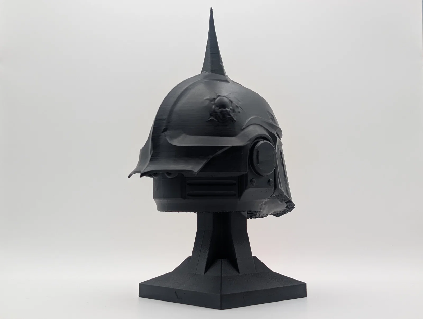 Việc sở hữu một chiếc mũ giáp được in 3D hoàn chỉnh sẽ tạo điểm nhấn thị giác cực mạnh cho góc trưng bày các mô hình miniature hoặc figure Warhammer của bạn. Thiết kế của giá đỡ được tối ưu hóa để giữ chiếc mũ vững chãi, tạo ra một tổng thể cân đối và chuyên nghiệp. Bạn có thể dễ dàng in mô hình này tại nhà bằng máy in FDM thông thường, sau đó tùy ý sơn phết theo phong cách bụi bặm, gỉ sét hoặc hư hỏng để tăng thêm độ chân thực cho sản phẩm.