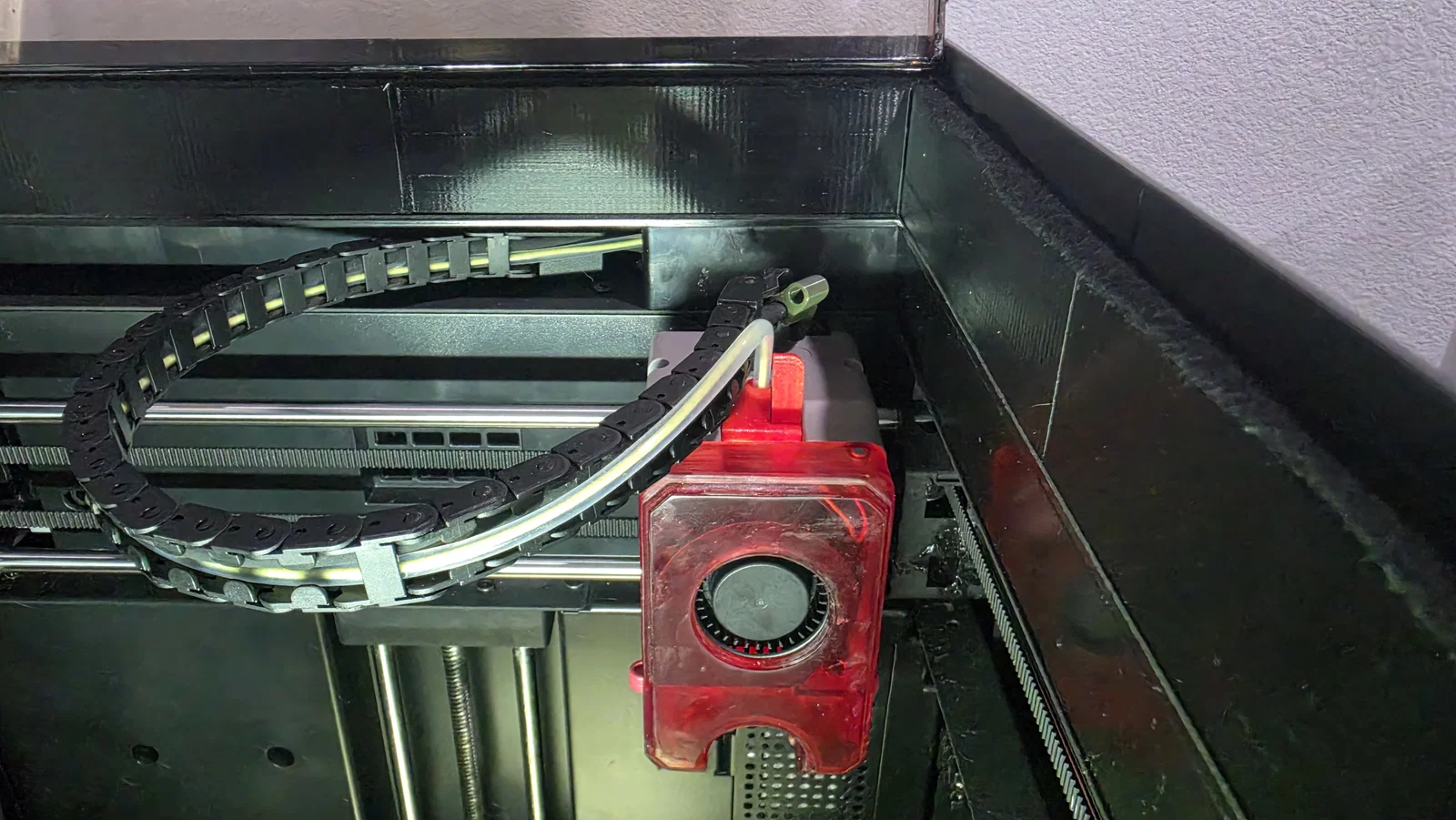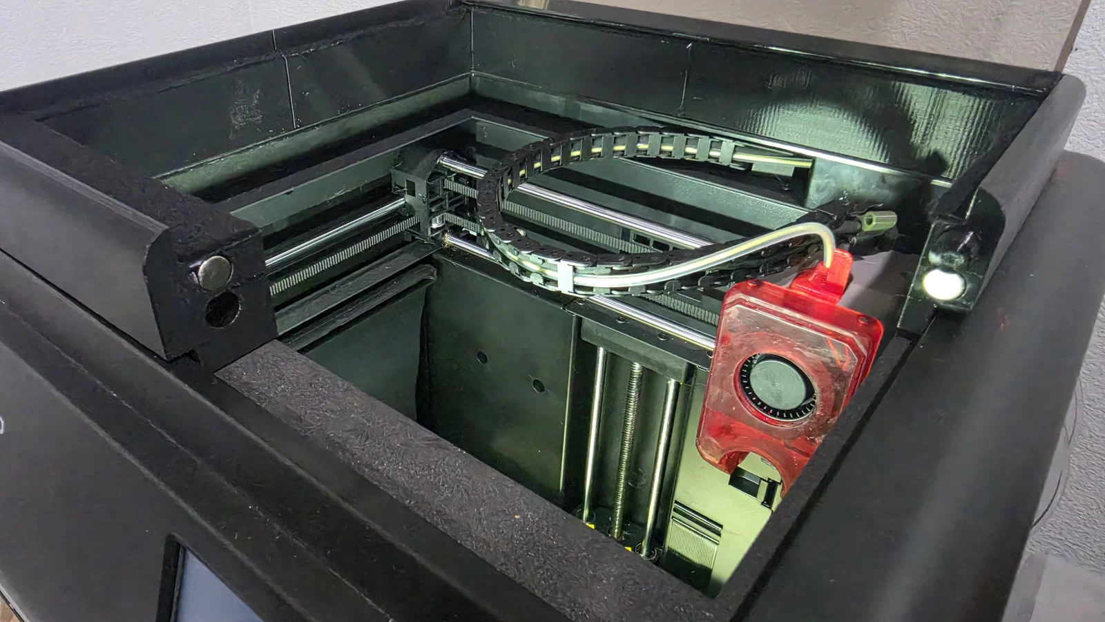 Mình đã thiết kế lại cái khung nâng (riser) cho nắp máy AD5M Pro. Cái này giúp tạo khoảng trống cho ống dẫn và tăng thêm chiều cao cần thiết cho dao cắt nhựa. Mình cũng đã vát mép các cạnh bên trong vì nhận thấy lúc đưa tay vào thay nhựa rất dễ bị cấn, nên làm vậy cho êm tay hơn.