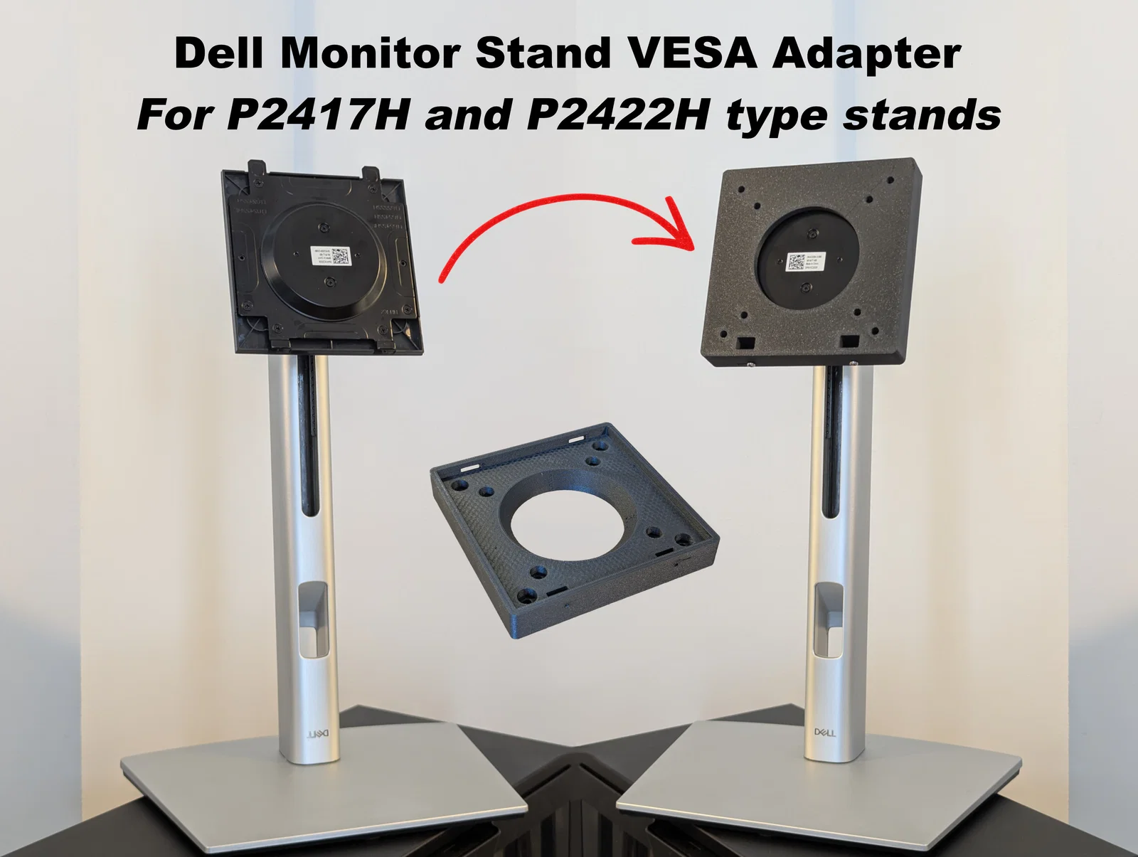 Cái ngàm chuyển đổi này giúp bạn gắn các loại màn hình có chuẩn VESA 100x100 và 75x75 lên chân đế DELL, ví dụ như các mã P2417h, P2422H và những dòng khác (P2317H, P2217H…). Các loại chân đế này thường được bán lại với giá rất rẻ hoặc được cho, mà chất lượng lại cực kỳ tốt, hỗ trợ tùy chỉnh độ cao, xoay, nghiêng và hướng màn hình. Tùy chọn - Bạn sẽ cần thêm hai con vít tự ren đường kính 3mm để cố định ngàm cho chắc chắn. Mình đã in bằng nhựa CF-PETG, mình khuyên các bạn nên dùng ít nhất là nhựa PETG để in nhé.