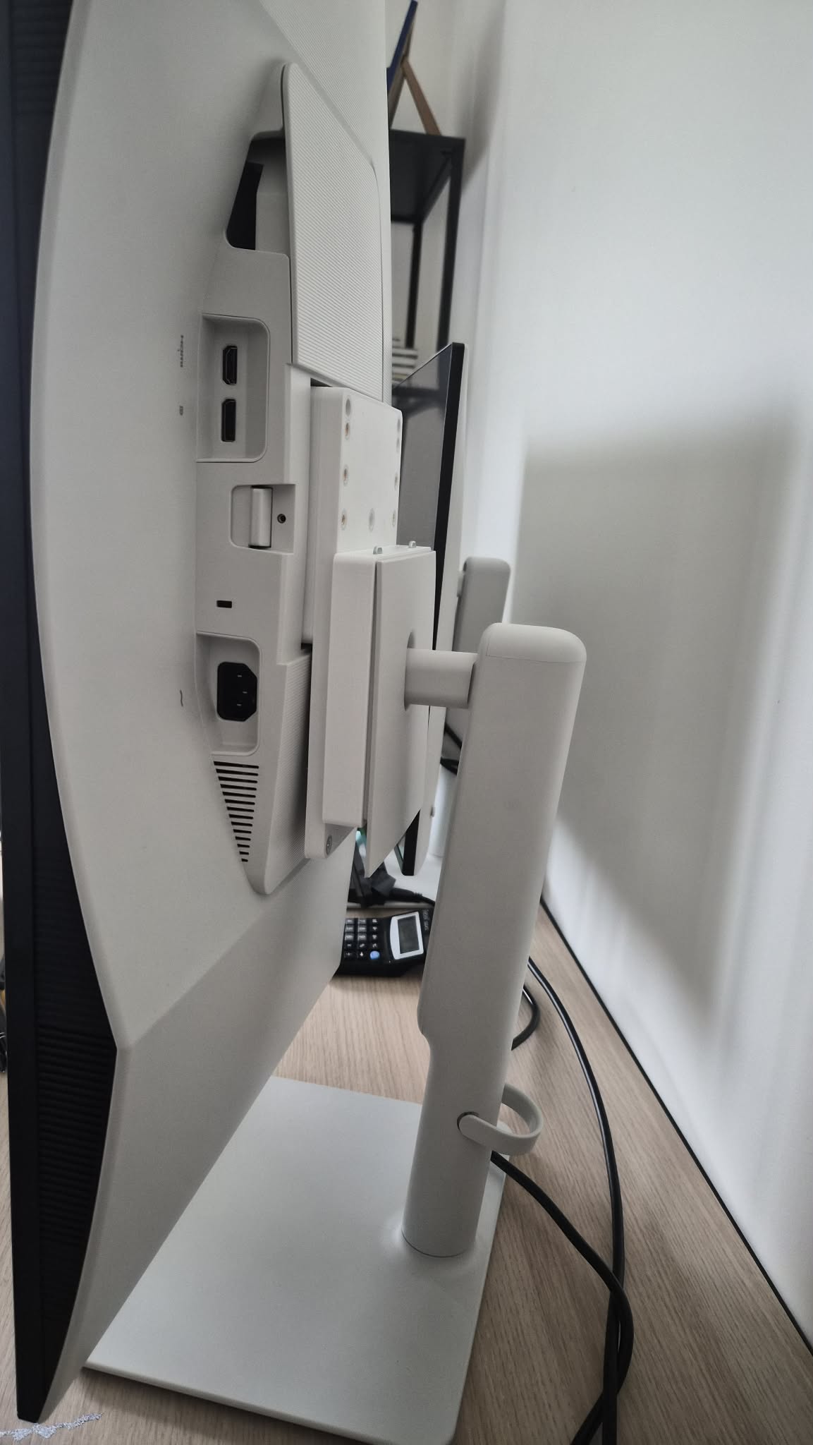 Tấm adapter này được làm ra dành cho những trường hợp ngàm gắn màn hình bị quá ngắn. Ví dụ như trường hợp của mình, mình không thể xoay màn hình sang hướng dọc được vì cái chân đế zin. Hai bộ phận này sẽ giúp bạn giải quyết vấn đề đó.