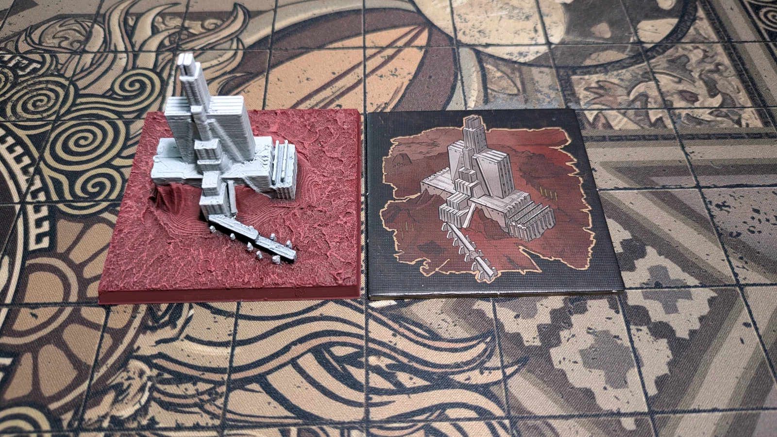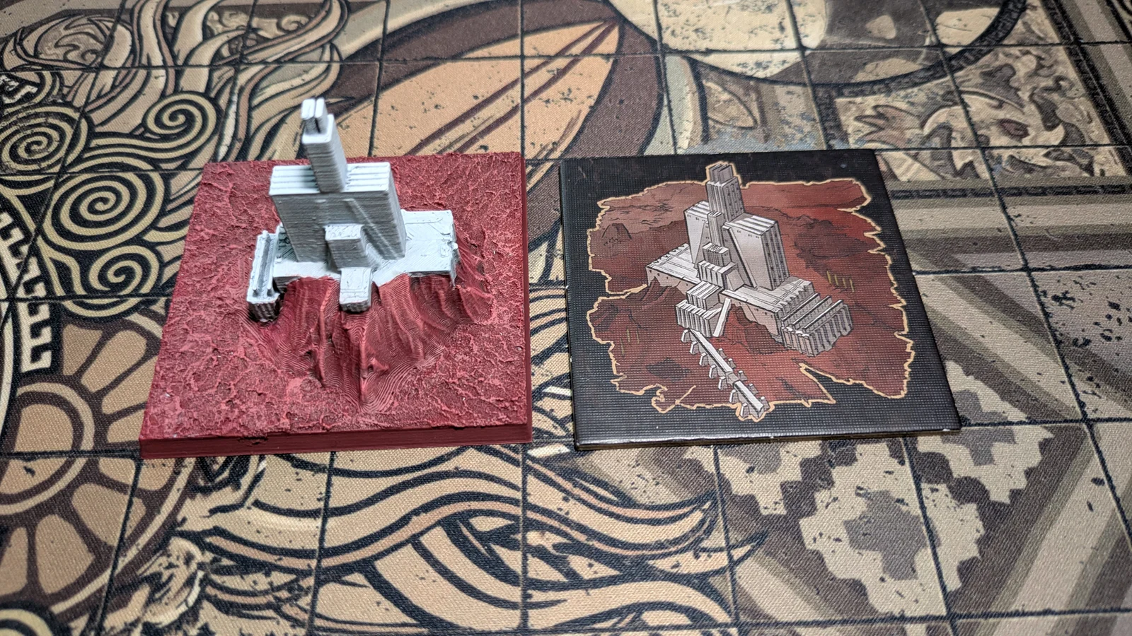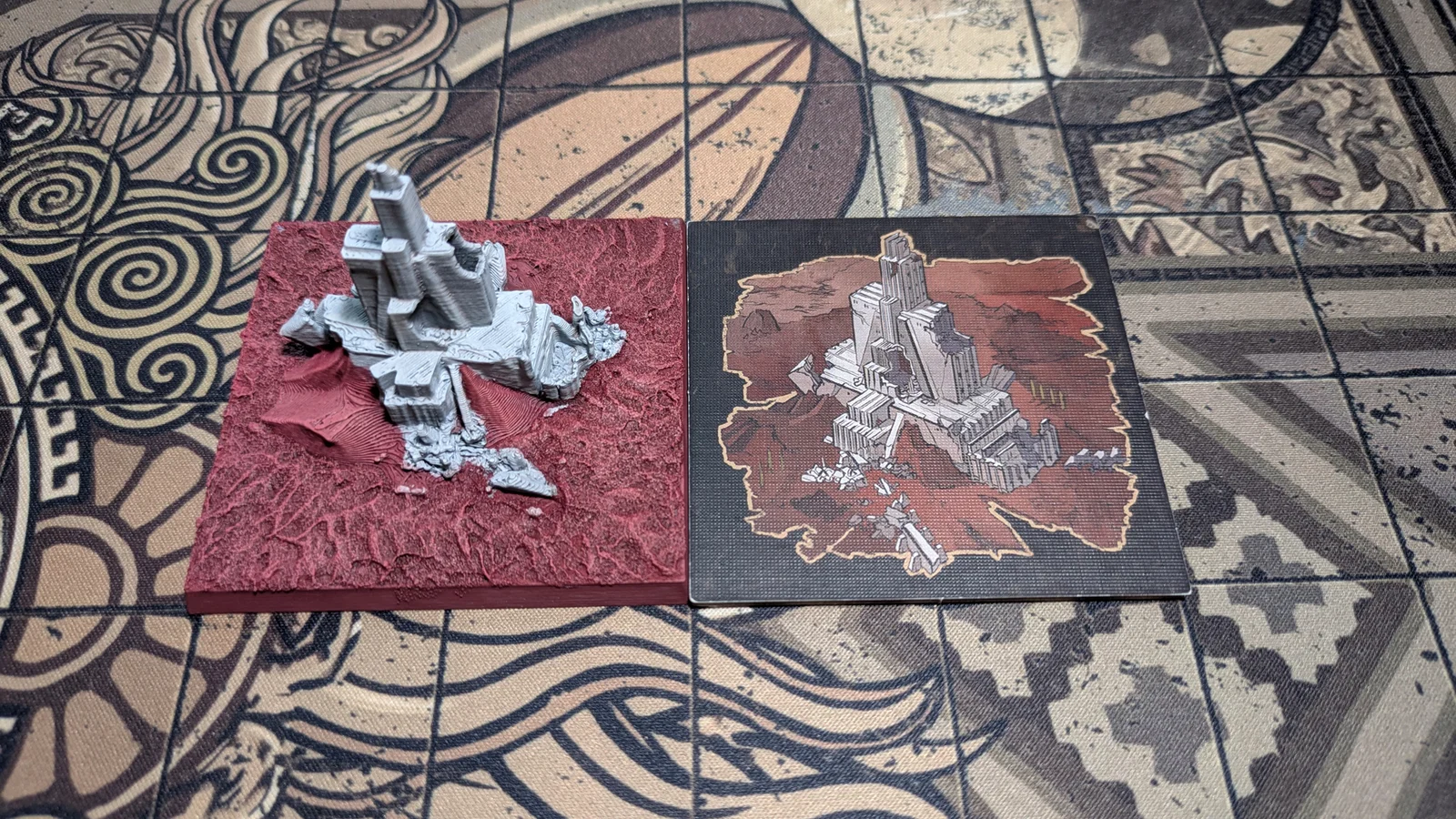 Mô hình Tấm địa hình Krypteia Outpost (nguyên vẹn và hư hại) dùng trong Cycle II của game Aeon Trespass: Odyssey. Sản phẩm được tạo bằng kỹ thuật quang trắc, chi tiết sắc nét cho anh em đam mê boardgame.