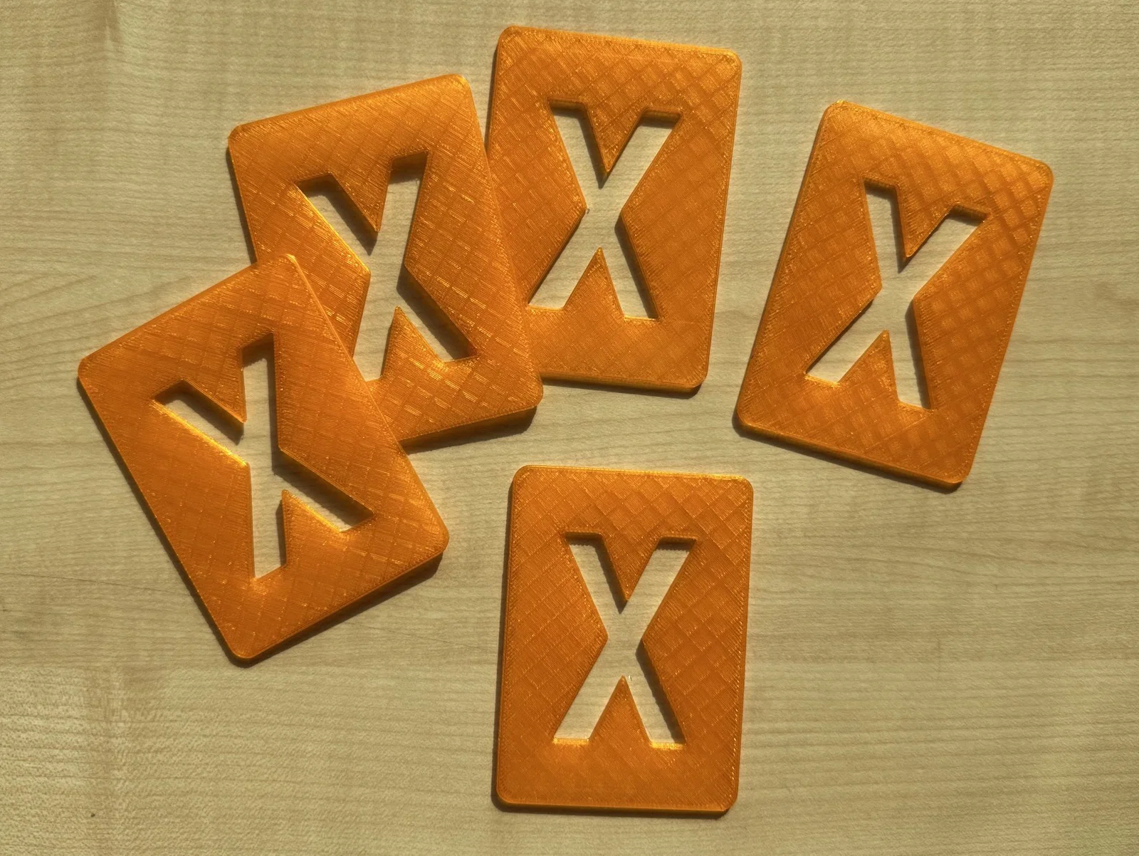 Mẫu X-Card này được in với độ dày 2mm, kích thước 63,5mm * 88mm giống như một lá bài tiêu chuẩn. Chữ X được cắt theo kiểu stencil nên anh chị em mình không cần phải dùng đến MMU hay AMS đâu nhé.