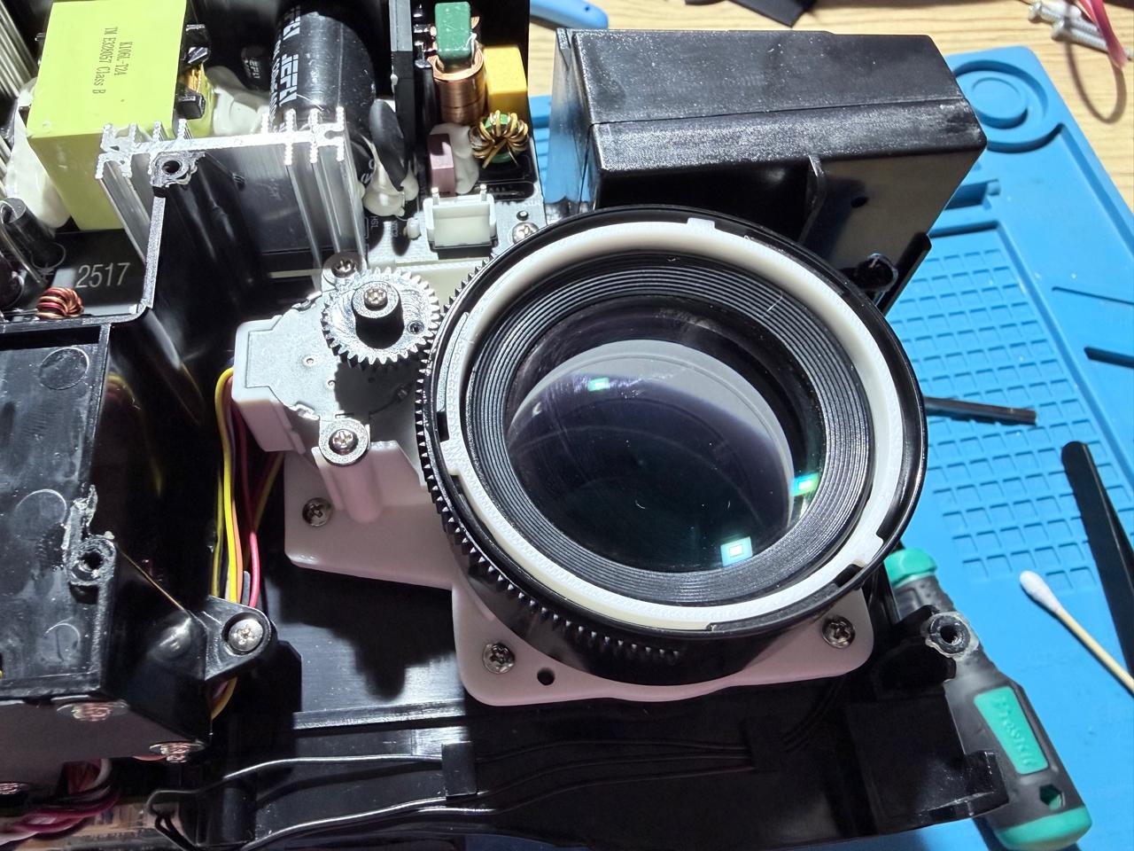 - Gắn vào khung máy: Lắp bộ phận vừa ráp xong vào khối quang học của máy chiếu, cố định bằng các vít ban đầu.