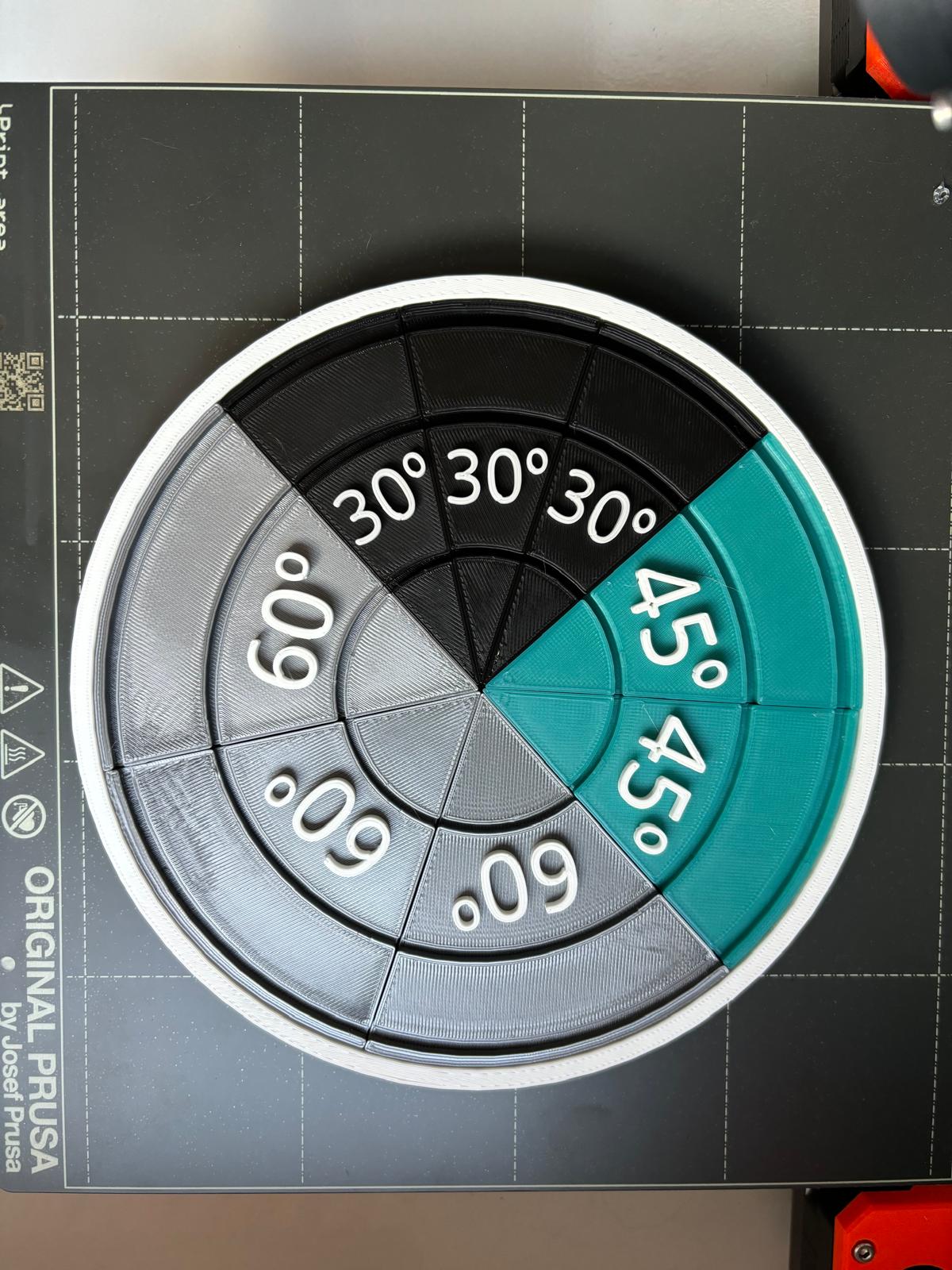 Mô hình 3D này thể hiện một vòng tròn hoàn chỉnh, tương đương với 360°. Nó được chia thành các phần góc để hình dung cách các độ được phân bổ trên mặt phẳng. Mỗi phần hiển thị một góc ở tâm khác nhau: 30°, 45° và 60°, giúp so sánh độ mở của các góc một cách trực quan. Nhờ đó, bạn có thể thấy rằng số độ càng lớn thì góc mở càng rộng. Những phân chia này giúp việc hiểu về số đo góc và mối quan hệ tỷ lệ của chúng trong vòng tròn trở nên dễ dàng hơn. Bạn có thể sử dụng kết hợp với mô hình radian có sẵn trong trang cá nhân của mình.