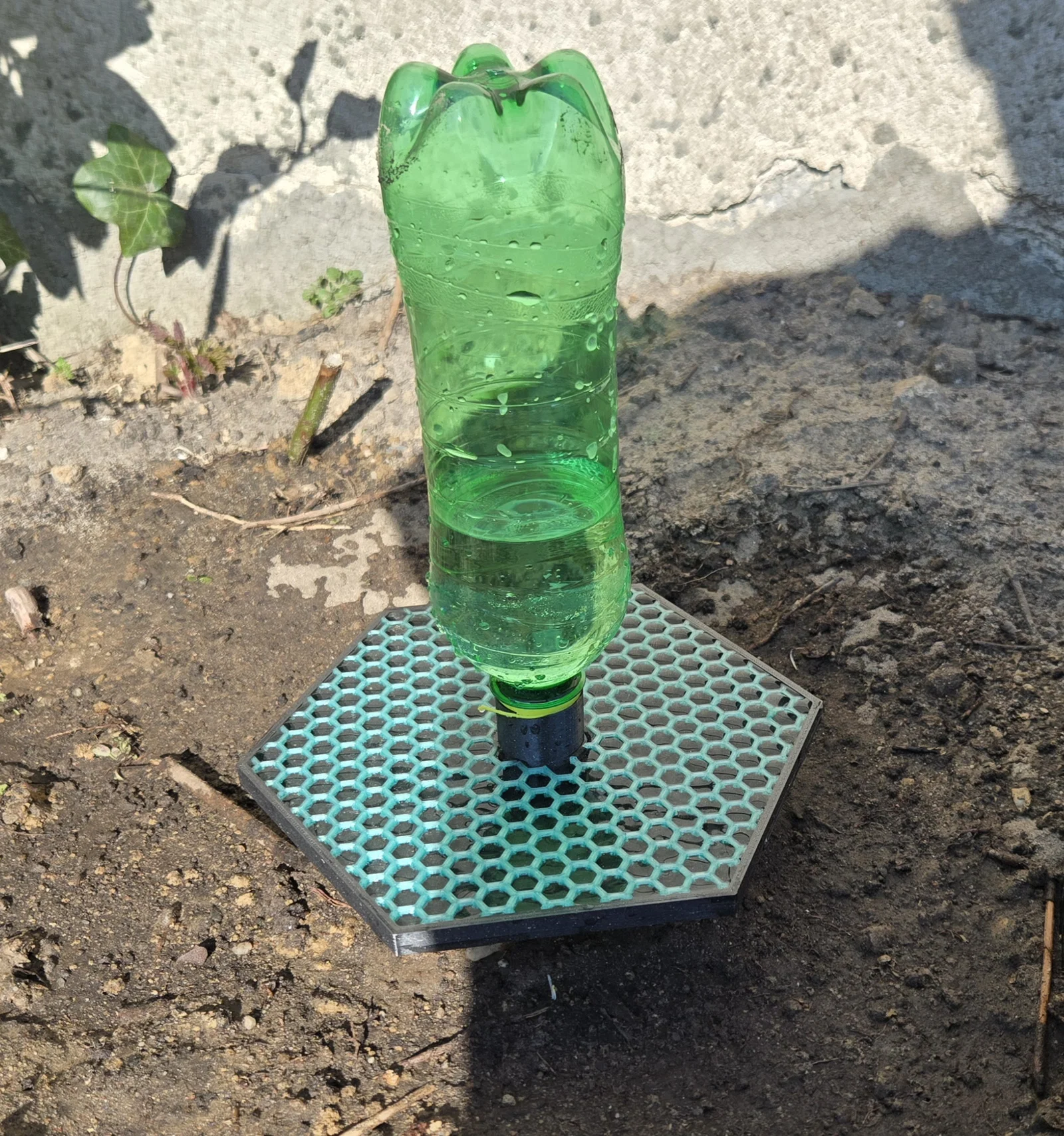 Tụi mình rất thích ý tưởng tạo ra thứ gì đó để giúp các loài côn trùng như ong có thêm nguồn thức ăn trong những ngày hè nắng nóng gay gắt và ít mưa. Vì muốn đặt cố định dụng cụ này trong bồn hoa hoặc chậu cây, tụi mình đã nghĩ đến việc gắn thêm một cái chân cắm đất để giữ cho dụng cụ không bị đổ, giúp ong dễ dàng sử dụng thường xuyên hơn.
