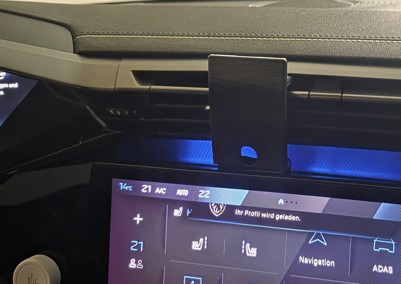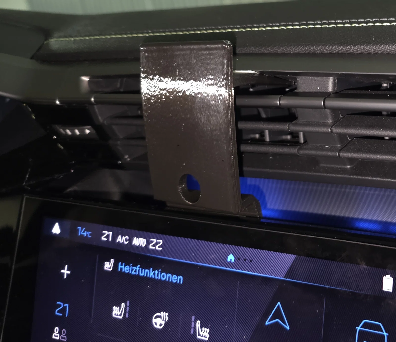 Mình vừa thiết kế một tấm đế để gắn kẹp điện thoại cho xe Peugeot 408 và 308. Tấm đế này sẽ khớp vào phần giữa phía trên của hệ thống thông gió. Nó có thể tự giữ nhưng nếu bạn dán thêm băng keo hai mặt vào phần đáy và phần lẫy gài vào khe gió thì đế sẽ cực kỳ chắc chắn. Sau đó, bạn có thể gắn bất kỳ giá đỡ điện thoại nào mình muốn lên đó. Bản thân mình đã dán thêm một đế sạc Magsafe Qi và dùng rất ngon lành.