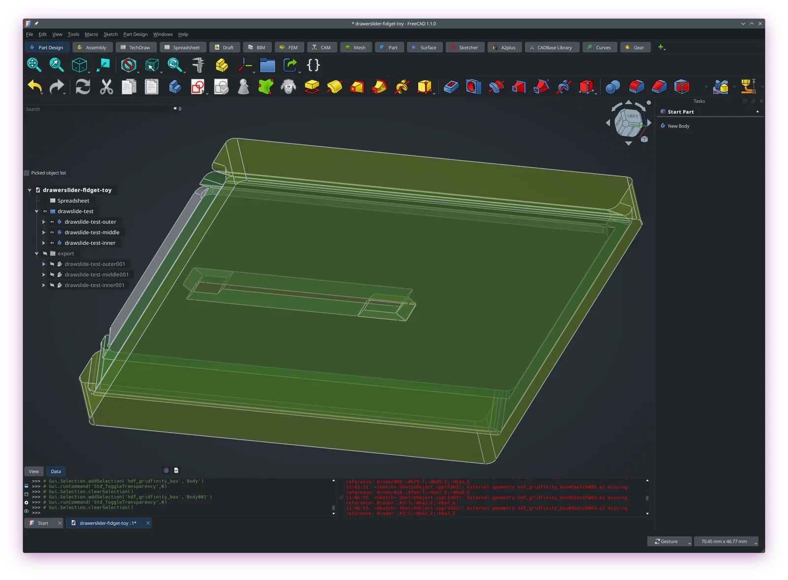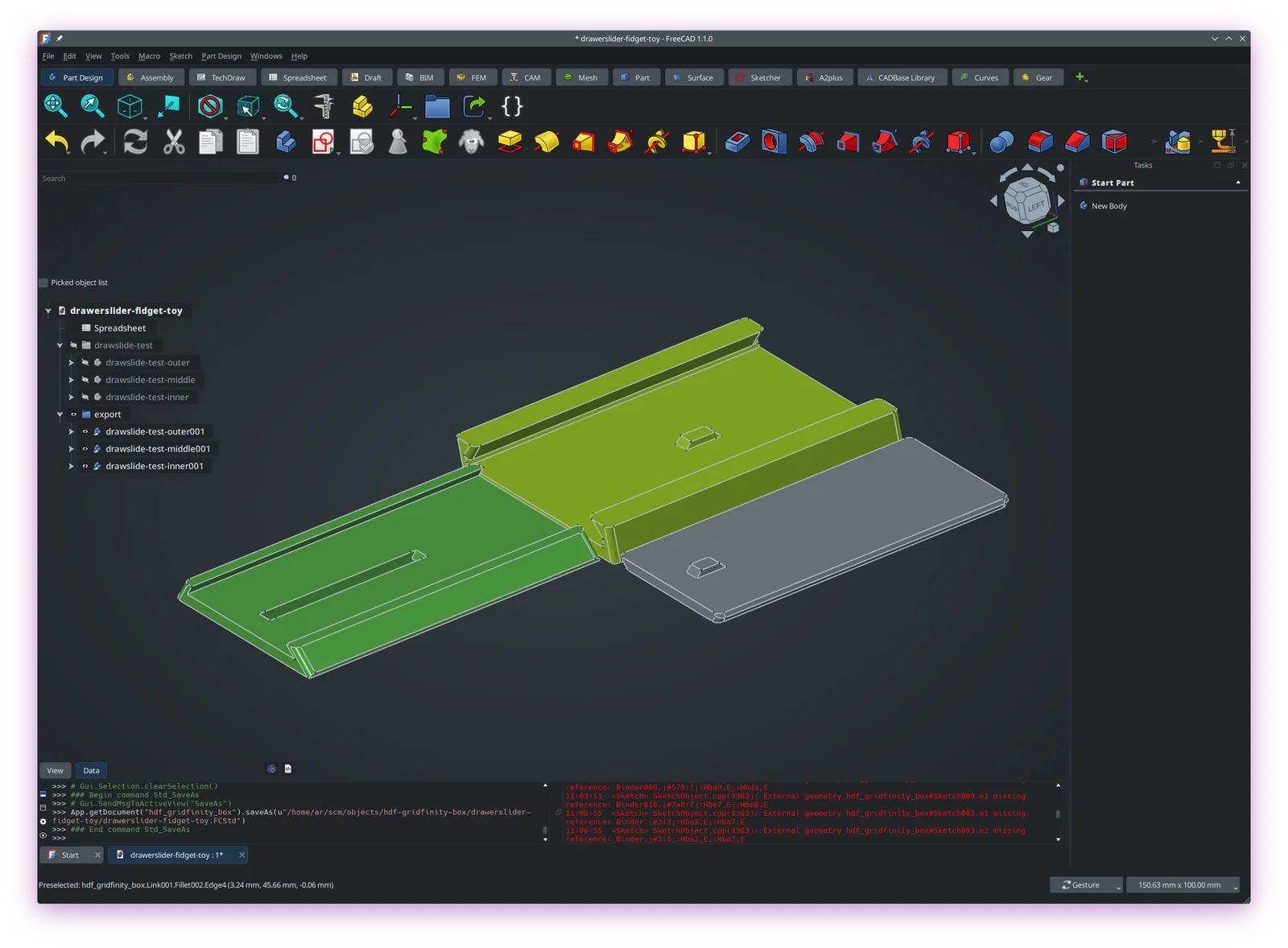 Trong lúc cần thiết kế một ray trượt ngăn kéo cho dự án khác, mình đã vô tình tạo ra món đồ chơi fidget này. Sản phẩm mô phỏng chuyển động trượt mượt mà, rất thích hợp để giải trí và giảm căng thẳng.